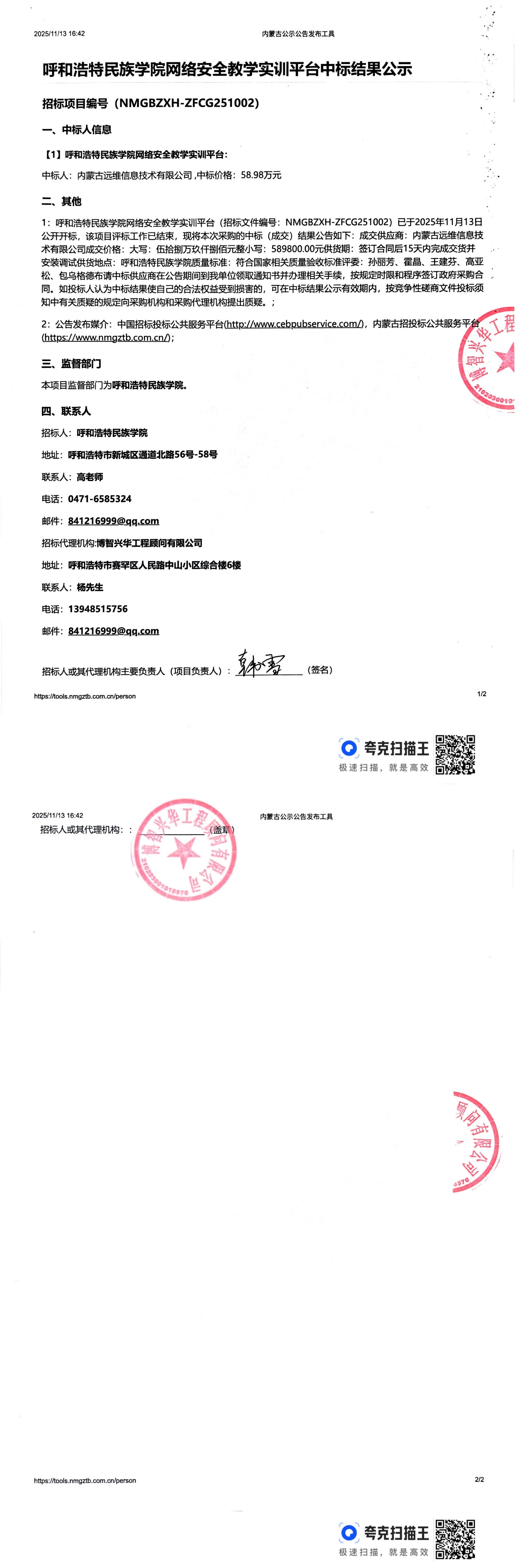 MILE米乐集团网络安全教学实训平台中标结果公示