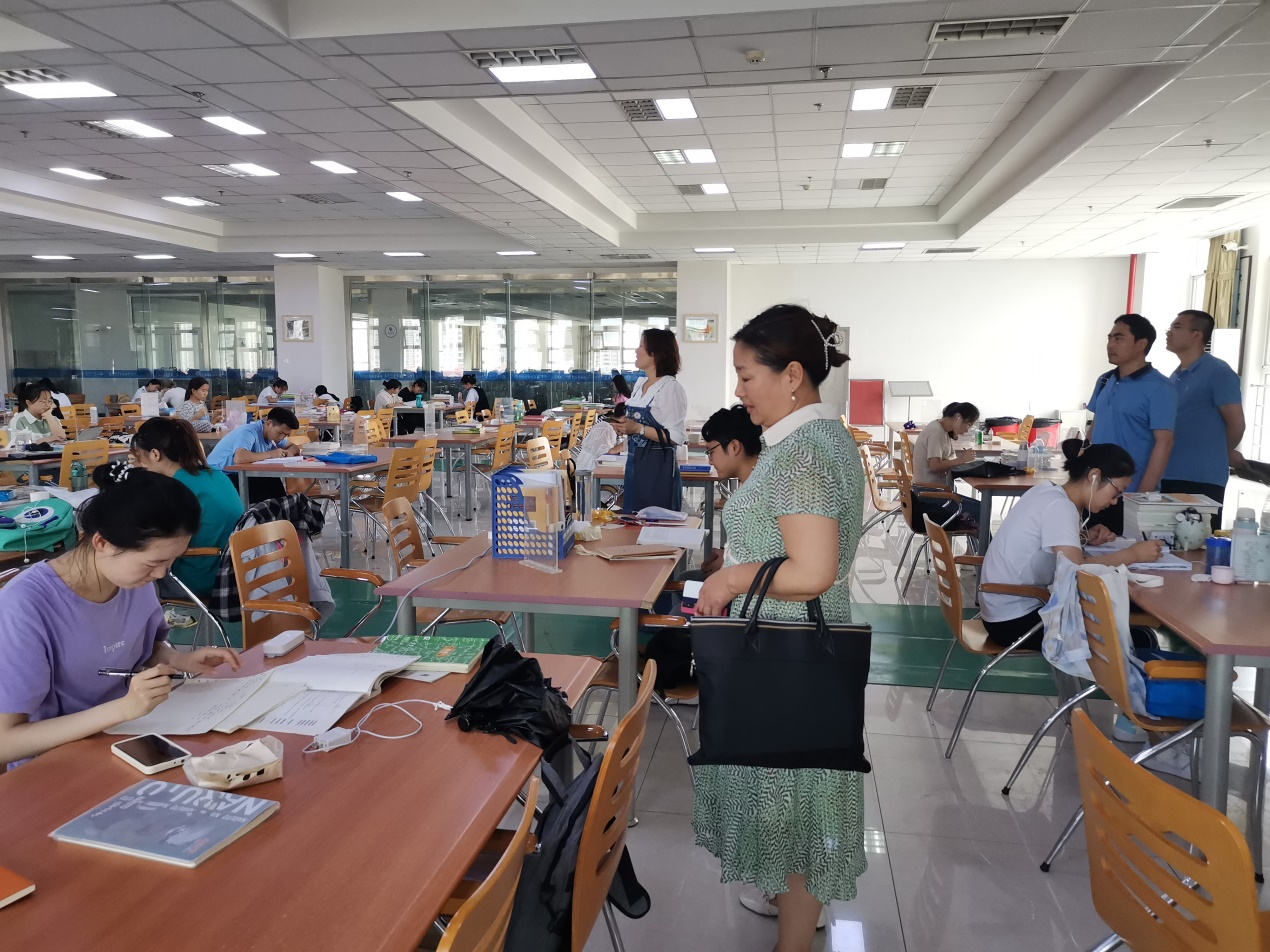 学院老师暑假期间看望在学校图书馆复习考研的学生