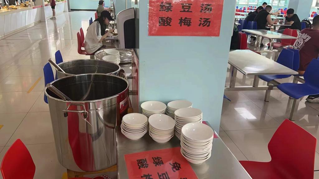 天气逐渐炎热,伴有连续的高温,为了做好防暑工作,更好地服务学校广大师生。学校后勤管理处餐饮服务中心全体员工为表达对师生的关心,帮助师生抵抗高温,6月6日开始,学校南、北食堂每一个楼层为师生们免费提供绿豆汤和酸梅汤饮用。在这炎炎夏日带给师生们一丝“清凉”和满满的爱意。