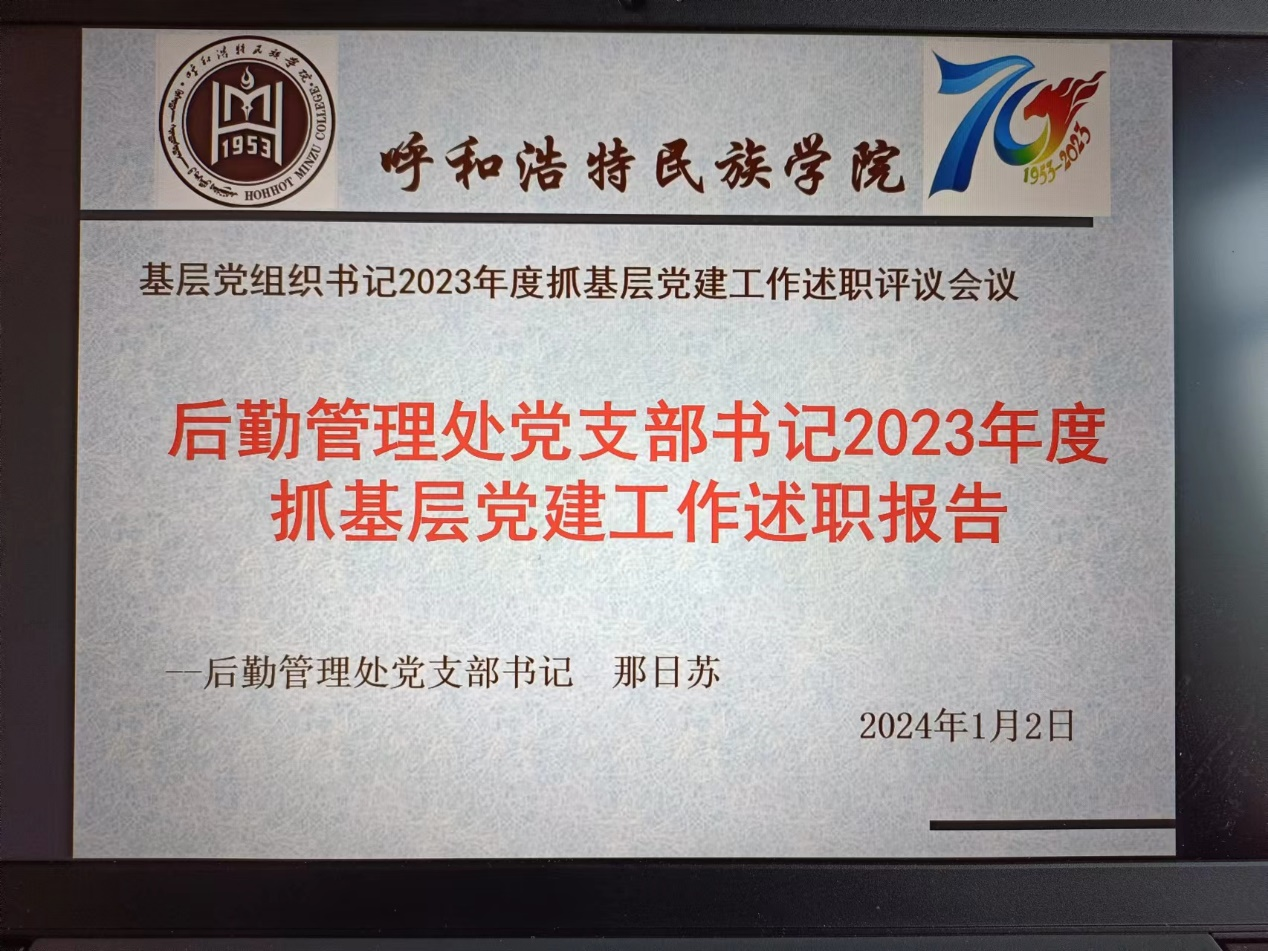 2024年1月2日,后勤管理处党支部在敏行楼三楼会议室举行基层党组织书记2023年度抓基层党建工作述职评议会议。后勤管理处党支部委员、党员、科级干部、全体职工、物业公司代表和餐饮公司代表参加会议。会议由后勤管理处党支部书记那日苏同志主持。