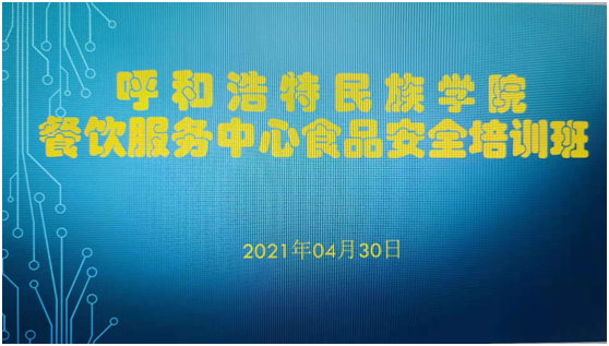 为加强学校食品安全管理工作,保障广大师生饮食安全,严防严管严控校园食品安全风险。4月30日下午,在学校南院食堂三楼开展食品安全管理培训班。餐饮中心特邀请呼和浩特市新城区市场监管局海东所两名专家,为南北院餐饮从业人员进行食品安全培训。