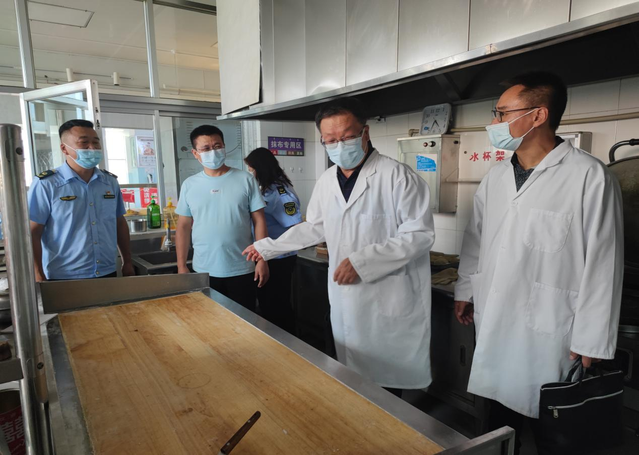 会后,学校党委委员、副校长刘瑞鸿同志及后勤管理处负责人陪同新城区市场监督管理局海东路市场监督管理所负责同志对米乐官网食堂主体资质、人员健康、环境卫生、食品采购验收、粗加工、烹饪、备餐、餐饮具消毒、饮用水使用、食品摆放、仓储温湿度控制、食品留样、废弃物处置、不合格品处置、自查自纠等经营行为进行了实地专业指导。同时,还着重指导了学校食堂“日管控、周排查、月调度”制度建设等重点工作开展情况。