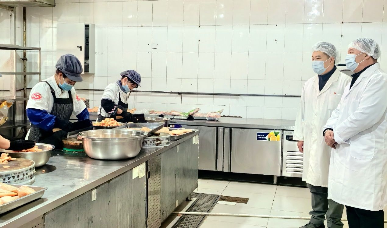 参会人员深入食堂一线,详细了解食堂运营模式、餐具洗消程序、原材料采购、留样管理、加工制作、供餐环节及“互联网+明厨亮灶”的情况。在食堂后厨详细查看了设备设施、食品保质期、卫生清洁、人员健康、场地消毒、制度建设、价格监管及水电气安全管理等情况。
