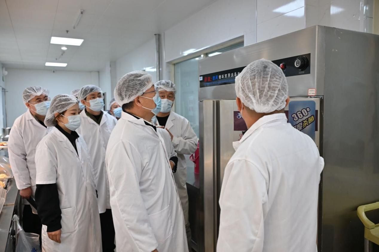 第一阶段,校领导带队分组现场检查,重点核查原材料采购验收、餐具清洗消毒、食品加工操作规范、从业人员管理、食品安全应急管理及智慧化监管等工作落实情况。