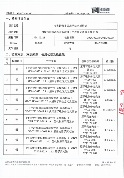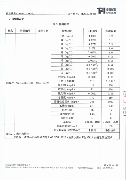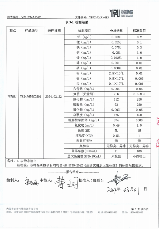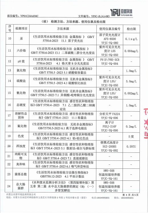 MILE米乐集团水质检测报告