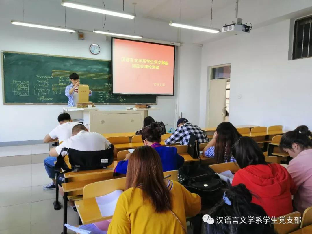 为了进一步提高学生党员学习党的理论、方针、政策的积极性和主动性,提高学生党员的理论水平,促进学生党员关心社会,了解国内外形势,进而培养他们的社会责任感,汉语言文学系学生党支部于2018年8月30日在都林楼112教室进行了应知应会理论测试,通过本次测试,一方面可以了解学生党员的理论知识掌握程度,为今后进一步加强学生党员的教育管理提供有效的依据。另一方面,以党建带动学风建设,有利于形成浓厚的学习氛围。