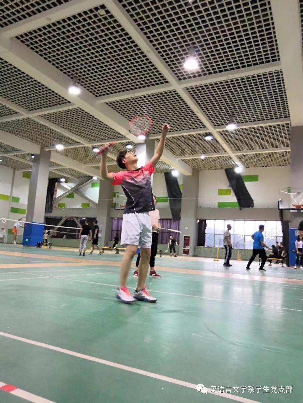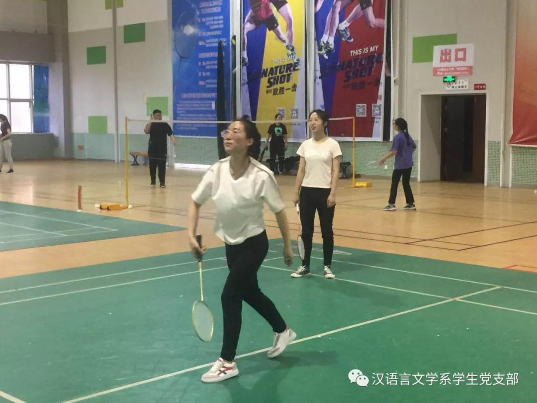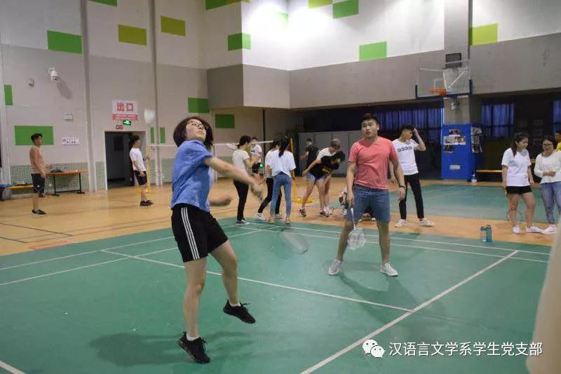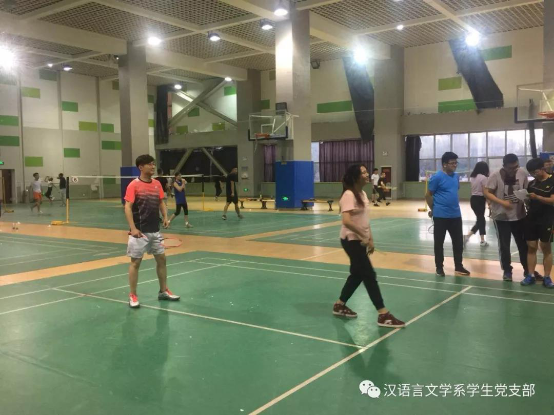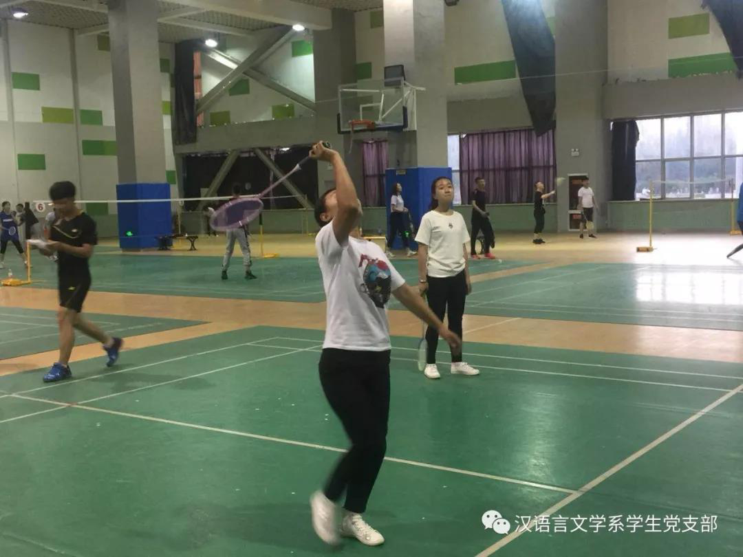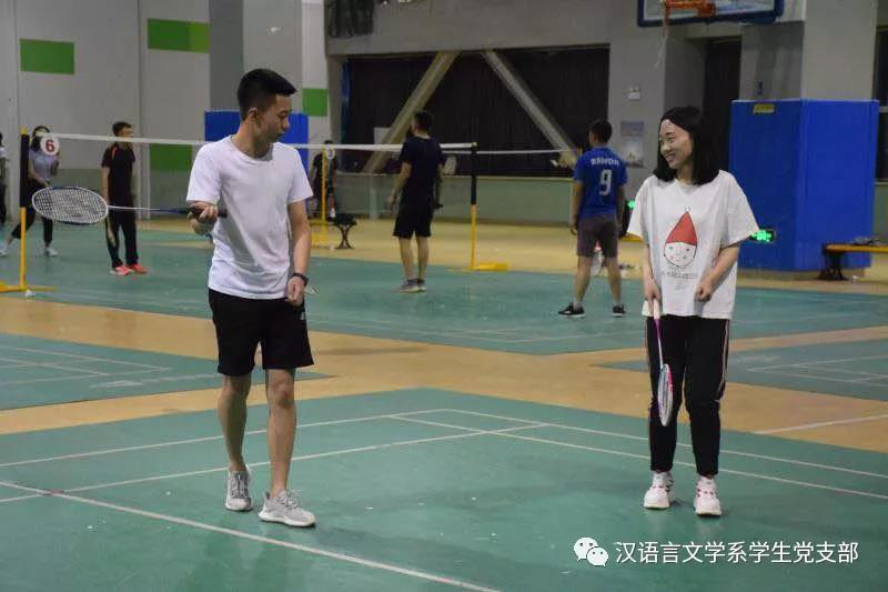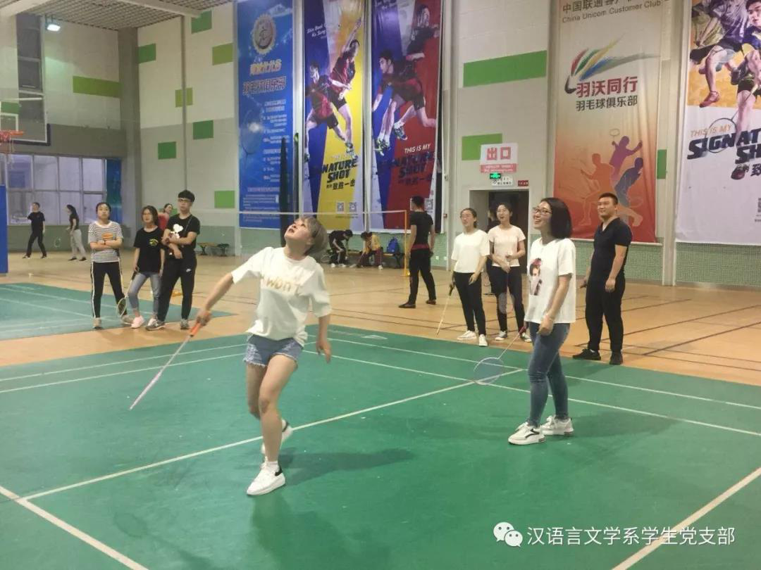在毕业季来临之际,汉语言文学系学生党支部为了欢送2014级毕业生党员,为了让同学们记住在支部度过的美好时光,于2018年5月17日晚在米乐官网体育馆一楼羽毛球场举行了羽毛球比赛,本场比赛在老师同学们的精心准备下激烈展开。学生支部书记张子涵老师及全体学生党员参加了比赛。