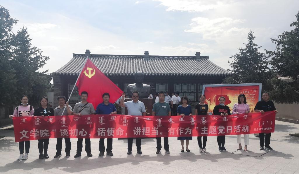 2020年7月1日下午,文学院与基础教育学院党总支联合组织党员教师赴乌兰夫故居开展“谈初心,话使命,讲担当,有作为”主题党日活动,以学习参观的形式庆祝建党99周年。