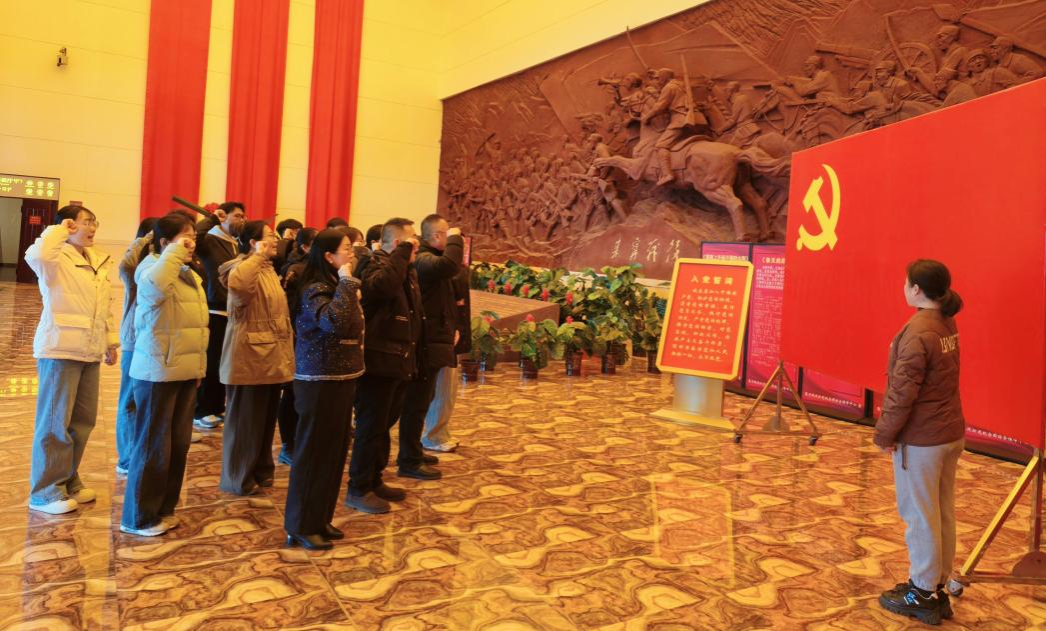 在讲解员的引导下,师生们深入了解集宁战役的重要意义,馆内的珍贵文物、史料和图片生动展现了集宁战役的背景、经过与胜利,诉说着革命先辈们不屈不挠、英勇奋斗的感人故事。参观结束后,全体师生党员重温入党誓词,面向党旗庄严宣誓,以铿锵有力的誓言表达对党的忠诚和为党的事业奋斗终身的决心。