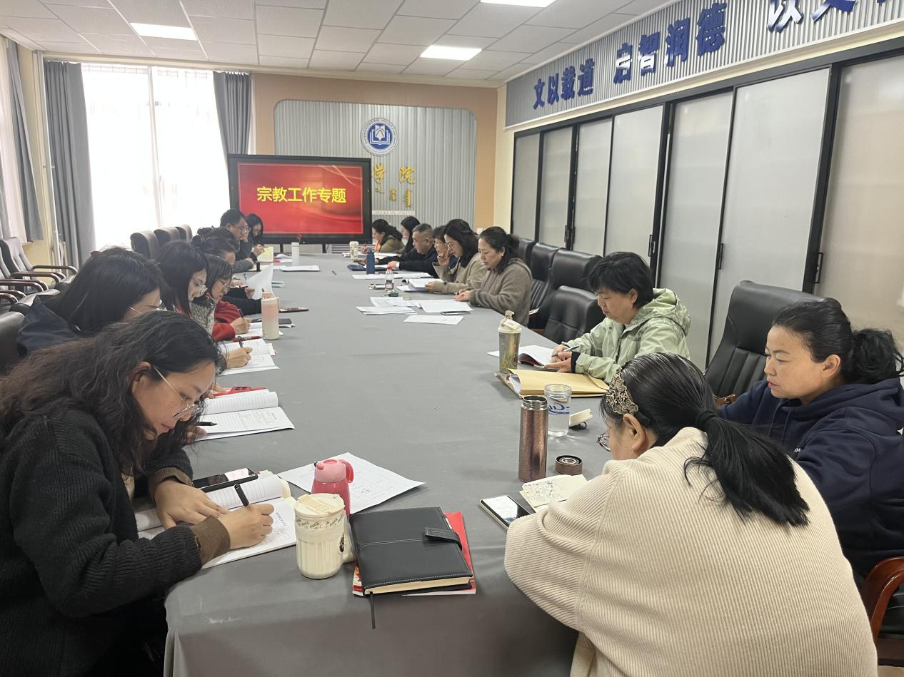 2026年4月2日,文学院召开宗教工作专题会议,会议由党总支书记包冬梅主持,全体教师参加。