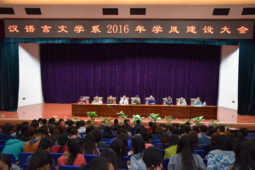 为了进一步加强学风建设,2016年4月19日,汉语言文学系在校图书馆二楼报告厅召开了2016年学风建设大会。参加此次大会的有汉语言文学系党总支书记、系主任、团总支副书记、各班班主任以及全体学生。