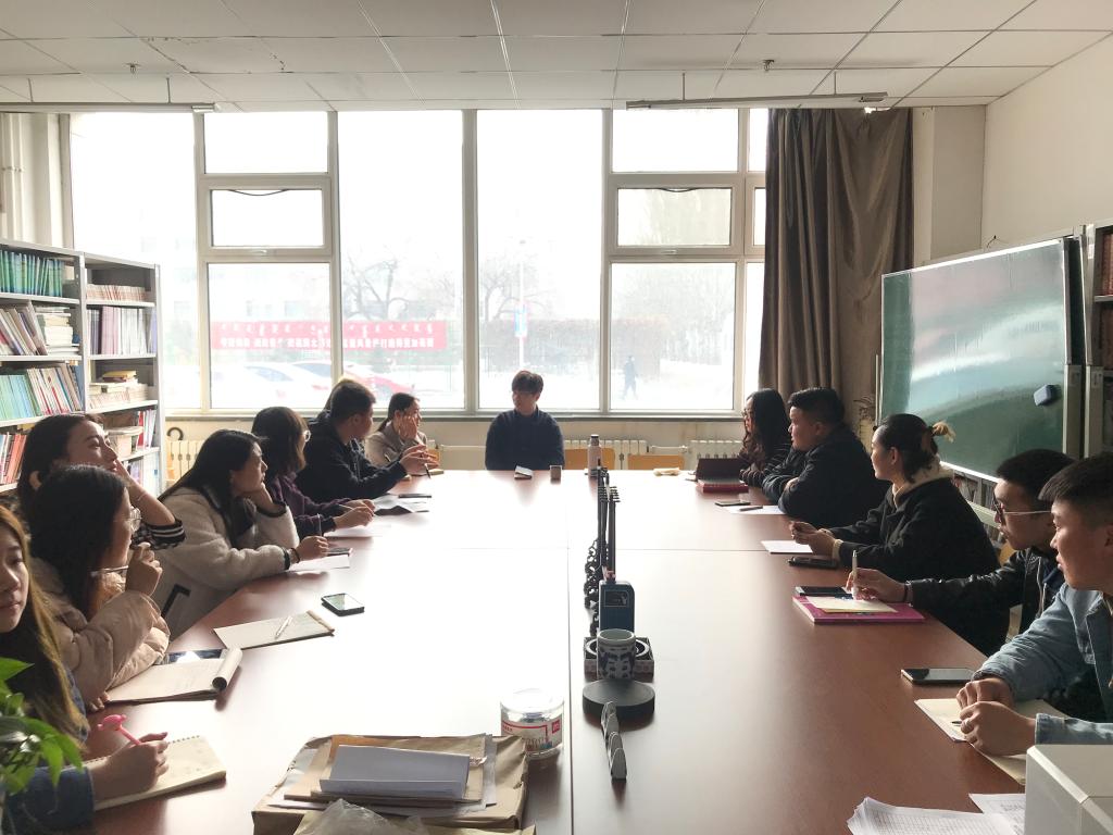 2月26日中午,汉语言文学系学生会在综合楼实训室召开了新学期工作安排会议。会议由团总支书记张子涵老师主持,系辅导员老师、学生会主席及各部部长参加了会议。