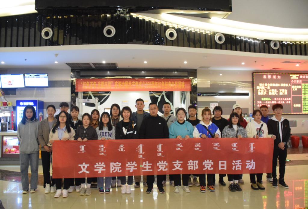 为持续深入开展党史学习教育,进一步加强党员的思想教育,丰富党员的精神文化生活,弘扬爱国主义精神,增强学院党组织的凝聚力,2021年10月8日下午,文学院学生党支部组织观看爱国主义教育影片《长津湖》。