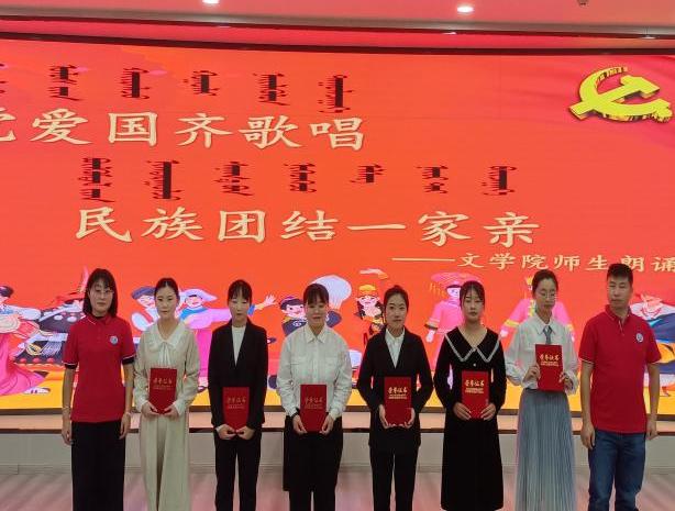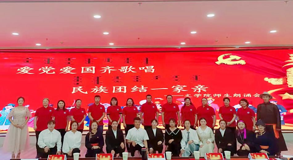 文学院教师也以朗诵方式回顾了中国共产党100年来经历的艰辛,赞美了党带领中国取得的辉煌成就,抒发了对党和祖国母亲的深情和愿景。最后,全体师生共唱《爱我中华》,在“五十六族兄弟姐妹是一家”的温暖曲调中结束了朗诵会。