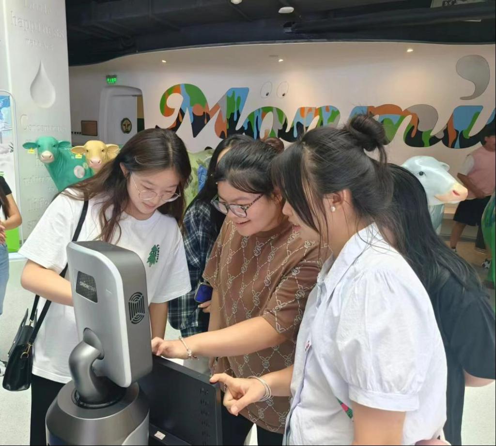 学生与“蒙牛”机器人互动,与科技近距离接触