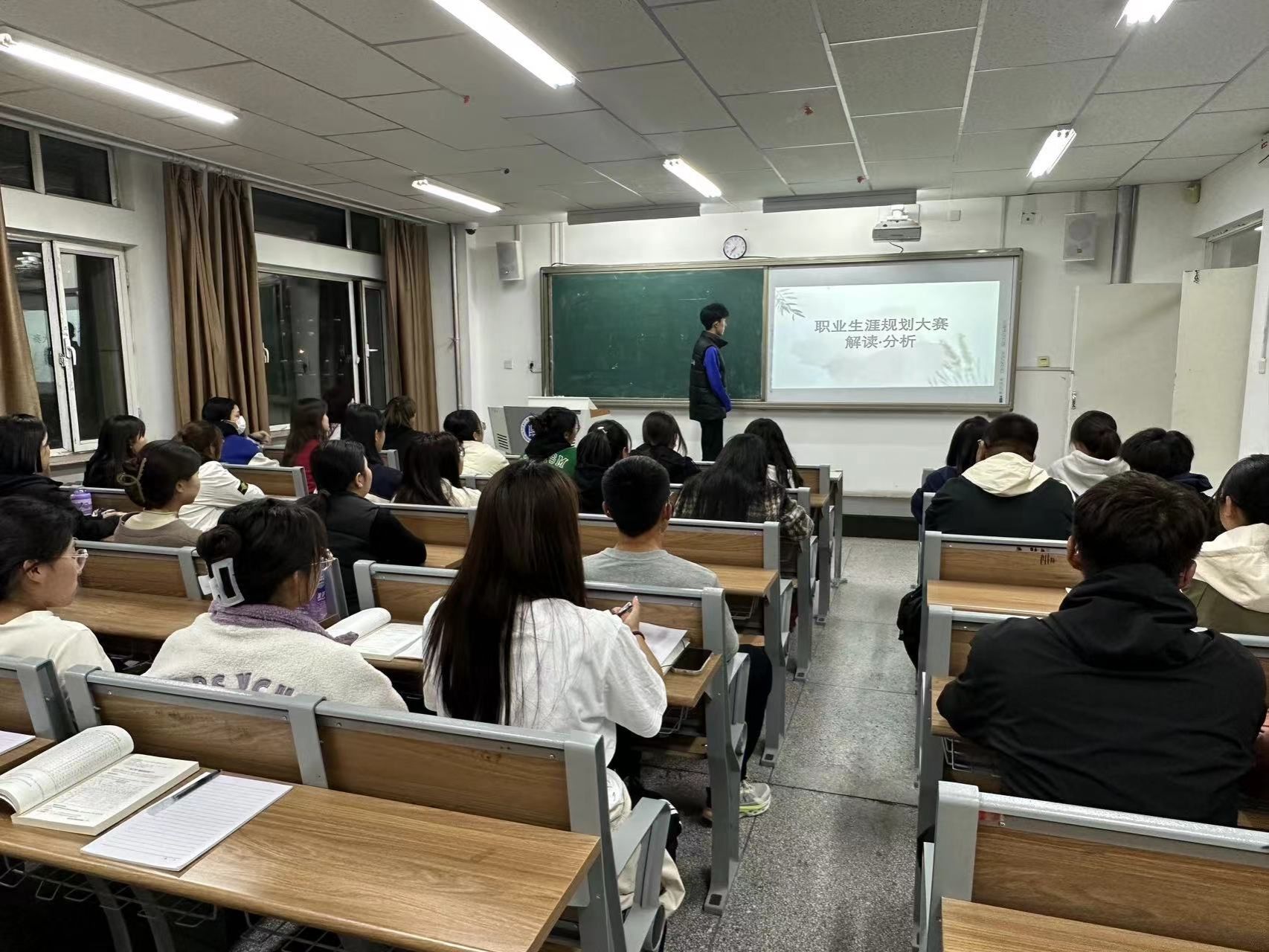 为贯彻落实学校《关于举办全校第三届大学生职业规划大赛系列活动的预通知》的工作要求,增强大学生职业生涯规划意识,文学院于2023年10月24日晚7时在尚志楼219、221、223教室开展大学生职业规划大赛赛前选拔,2023级全体新生共119人参加本次比赛。