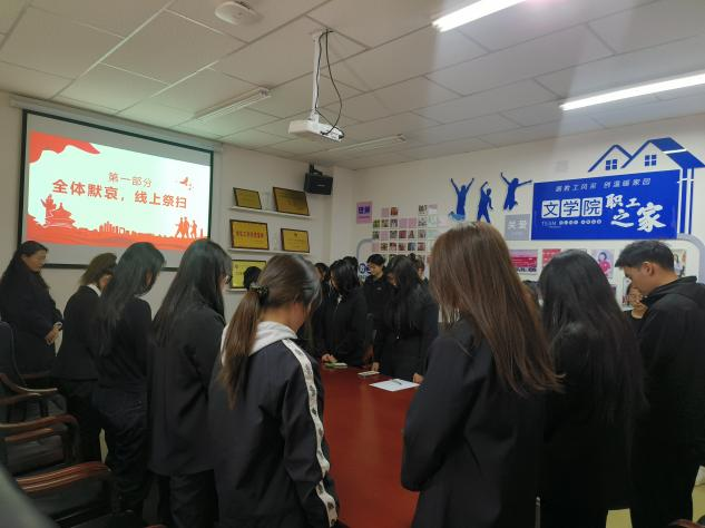 此次线上祭祀活动在庄严而肃穆的氛围中拉开帷幕。随着主持人宣布活动开始,学生们肃立默哀表达对先人的怀念与敬意。在默哀结束后,来自侗族学生代表王含鲜为大家详细的介绍了侗族人民的方言和文化习俗,特别介绍了龙大道、粟裕大将等侗族的革命英雄,并表达了对英烈们的缅怀之情。最后,学生们登录中华英烈网,为家乡英烈祭扫。
