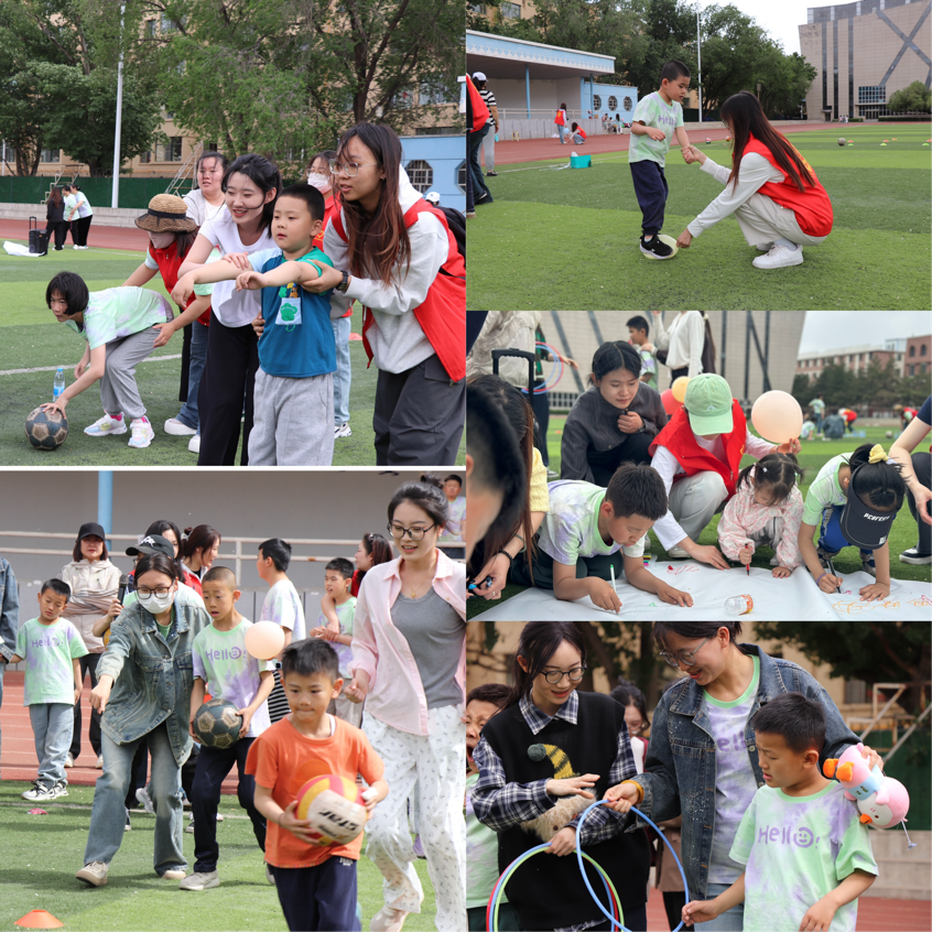 为了传递爱与关怀,助力特殊儿童成长,让社会温暖触及每一个角落,2025 年 5 月 18 日下午,文学院“文行塞北” 青年志愿者服务队联合三顺店社区在MILE米乐集团北操场举办 “童心同梦,爱暖星途” 关爱特殊儿童趣味活动。80余名志愿者及儿童和家长参与了本次活动。