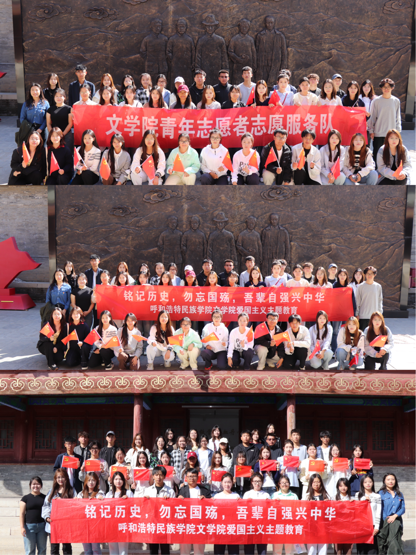 中华人民共和国成立76 周年将至,9 月 28 日下午,文学院学生党员、团员及青年志愿者,在团总支书记刘晓带领下,赴绥蒙抗日救国会旧址纪念馆,开展 “赓续红色血脉,我和祖国共成长” 迎国庆缅怀活动,为祖国献礼。