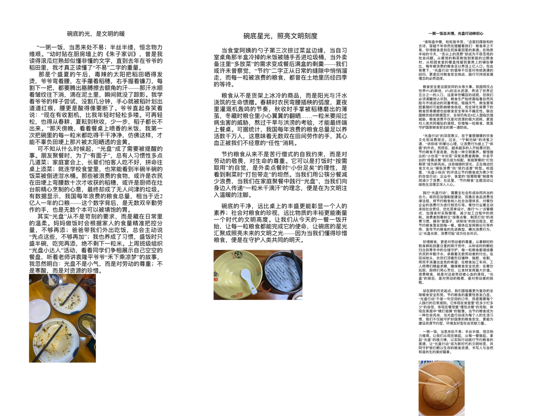 活动中,学院各班级、团支部同步举办国家粮食安全日主题班会,通过多元形式讲解粮食从田间到餐桌的历程与粮食安全现状,引导学生正视浪费问题、明晰节粮意义。同时,文学院发起“青春守护中国粮”光盘行动主题征文活动,鼓励学生结合自身经历与感悟创作,用文字传递节粮理念,不少作品生动展现了对“光盘行动”的践行与思考。