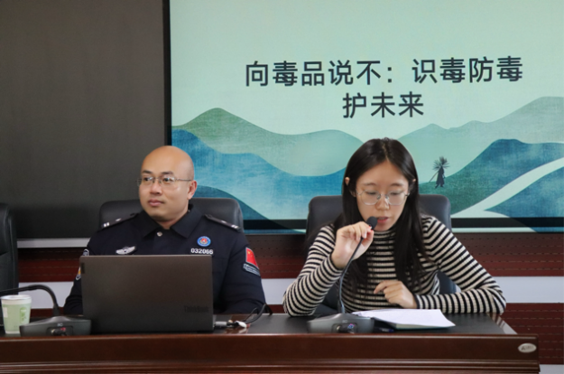 11月24日,MILE米乐集团文学院于尚智楼413教室举办“向毒品说‘不’——识毒防毒护未来”主题宣讲会,特邀国家移民局常备力量第二总队民警赵子鹏主讲,文学院专职辅导员杨悦梅、孟子勋老师出席,文学院2025级全体学生参与活动。