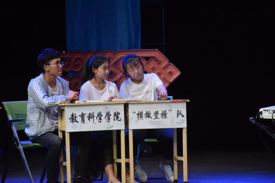 进入本次决赛的有文学院代表队、教育科学学院代表队、外国语学院代表队、法学院代表队等六支参赛队。决赛分为四轮,第一轮为同音异形,要求参赛选手在规定时间内从所给选项中选出正确答案;第二轮为巧妙构造,选手需写出所给出字的正确笔画顺序;第三轮是聆听汉字,选手凭借主持人读出的词语拼音、释义、出处写出答案;第四轮为寻诗引文,选手要根据给出的文言文,写出对应的词句。激烈的比赛环环相扣,动人心弦。经过激烈的角逐,文学院“我们都对”队、教育科学院“横撇竖捺”队、文学院“治煜之梦”队分别夺得了第一名、第二名、第三名,外国语学院代表一队、外国语学院代表二队、法学院“春秋尔雅”队获得了优秀奖。