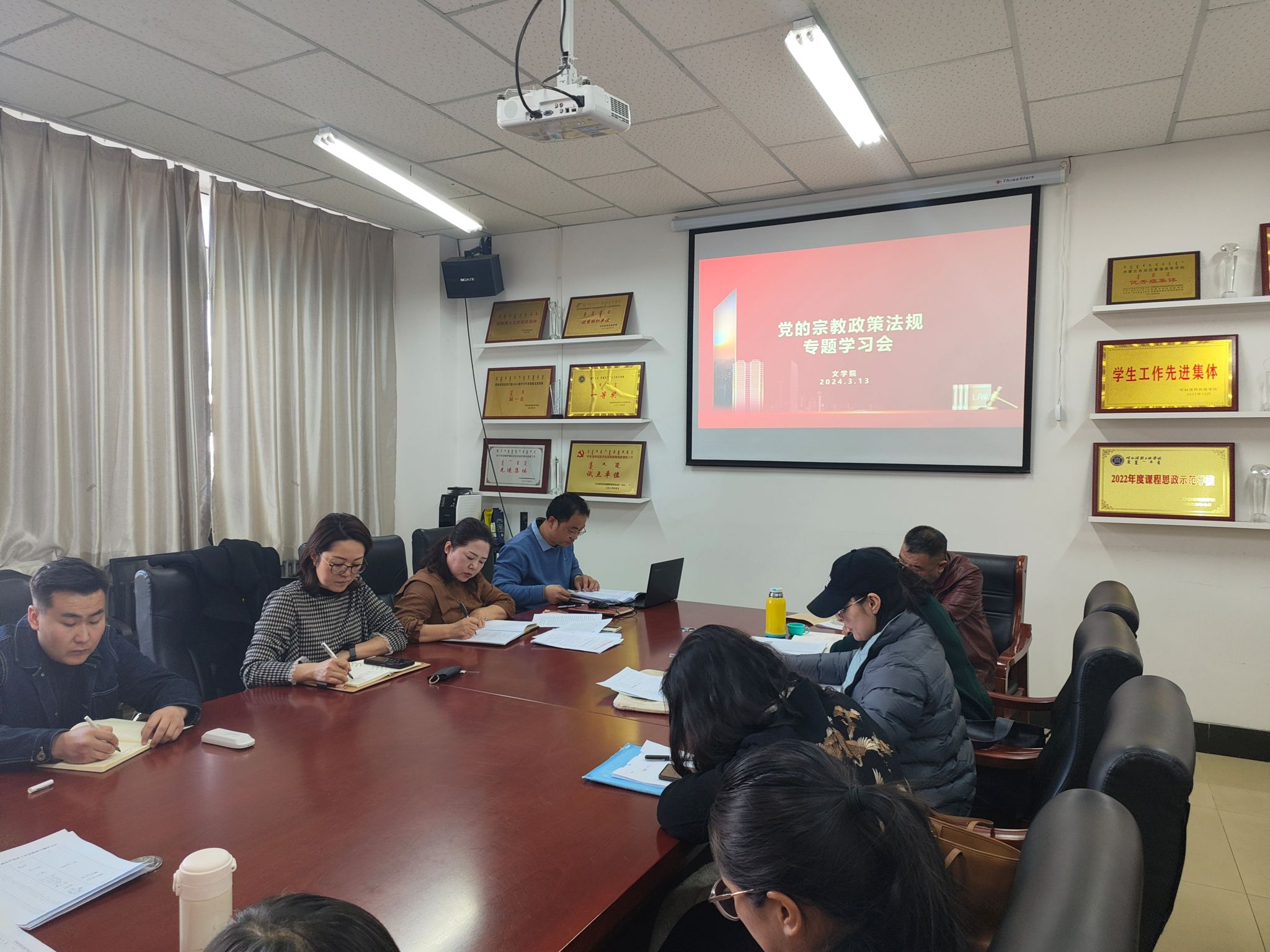 为深入学习宗教工作重要性,切实加强宗教政策法规的落实和宣传教育,文学院党总支于3月14日下午在尚智楼115会议室召开党的宗教政策法规专题学习会,文学院全体教师参会。