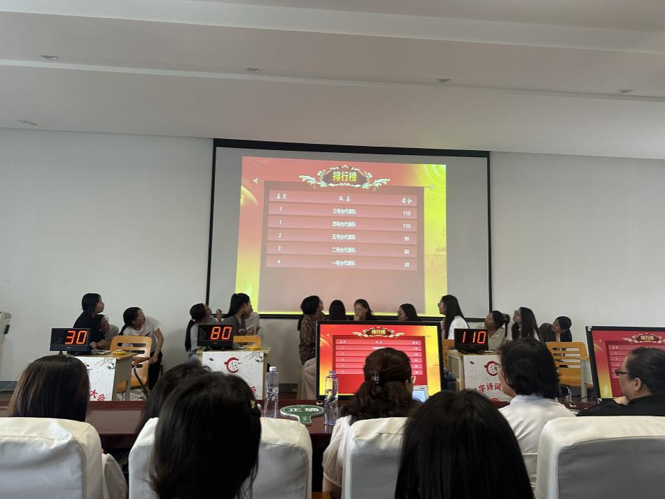 比赛分为四个环节,选手们通过“小试牛刀”“点字成诗”等环节展现了扎实的汉字功底,赢得了观众阵阵掌声。“眼疾手快”环节更是考验了选手们的快速反应和书写能力,现场气氛紧张而激烈。比赛间隙,乌雅汗同学为大家献上了悠扬的歌曲,有效缓解了现场紧张的氛围,为大家带来了一丝轻松与愉悦。