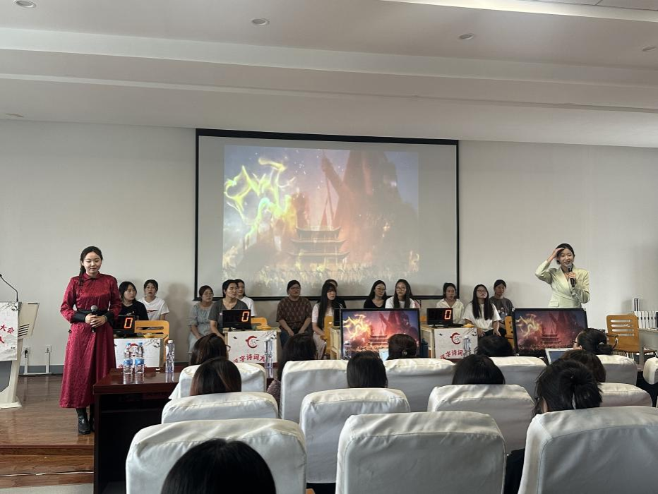 大赛伊始,文学院院长高娃发表致辞,她强调,本次汉字听写大赛不仅是对学生语文素养和书写能力的一次检验,更是对汉字文化的一次宣传和弘扬。她表示,汉字是中华文明的瑰宝,通过比赛,旨在促进汉字书写水平的提高,加深全体师生对汉字的理解和热爱。她鼓励参赛选手以饱满的热情和严谨的态度展现自己的才能,并期待全体师生在感悟汉字深厚底蕴的同时,全面提高规范汉字运用能力。随后,学院北疆“小红马”大学生宣讲团成员带来的《木兰辞》诗词朗诵将现场氛围推向高潮。
