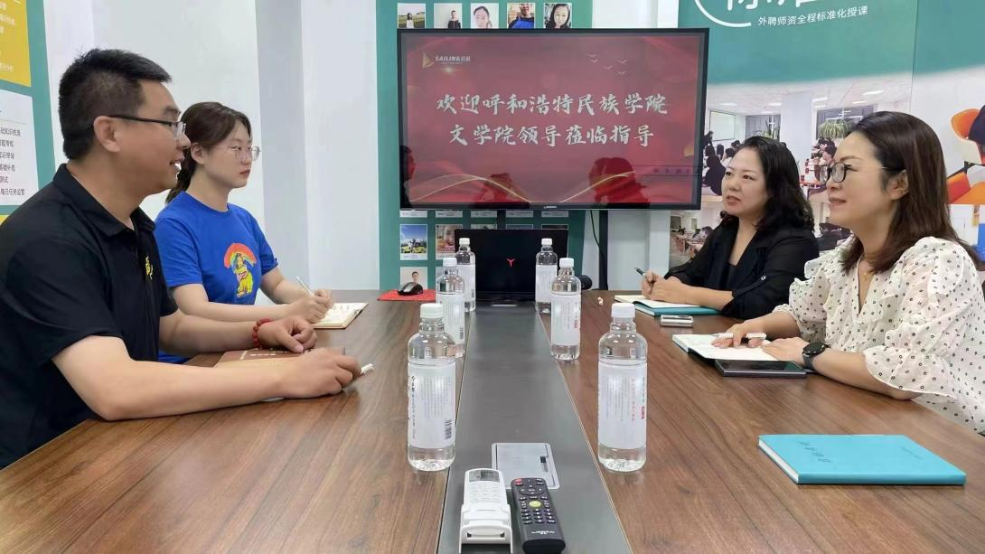 为进一步拓宽学生实习实训与就业指导渠道,了解教育行业用人单位人才需求,7月12日,文学院院长高娃、党总支副书记包冬梅一行,前往通辽市内蒙古启航教育培训有限公司开展访企拓岗行动。此次访问考察深入了解教育机构在考研辅导领域的独特优势与培训特色,探索专业、精准的考研辅导服务,切实提升文学院学生考研竞争力。