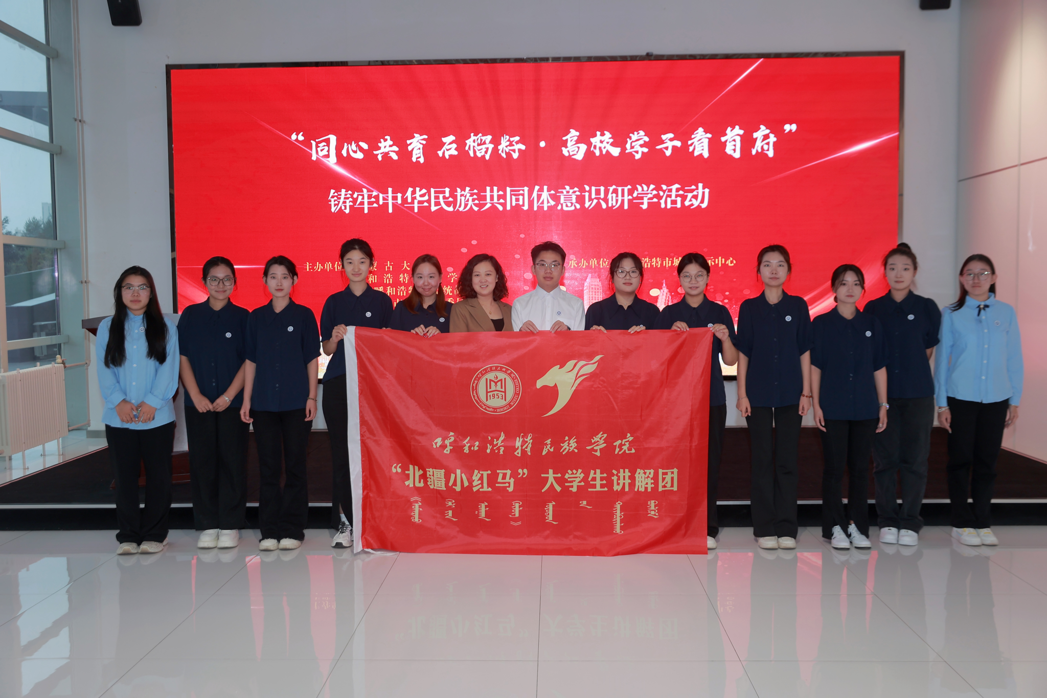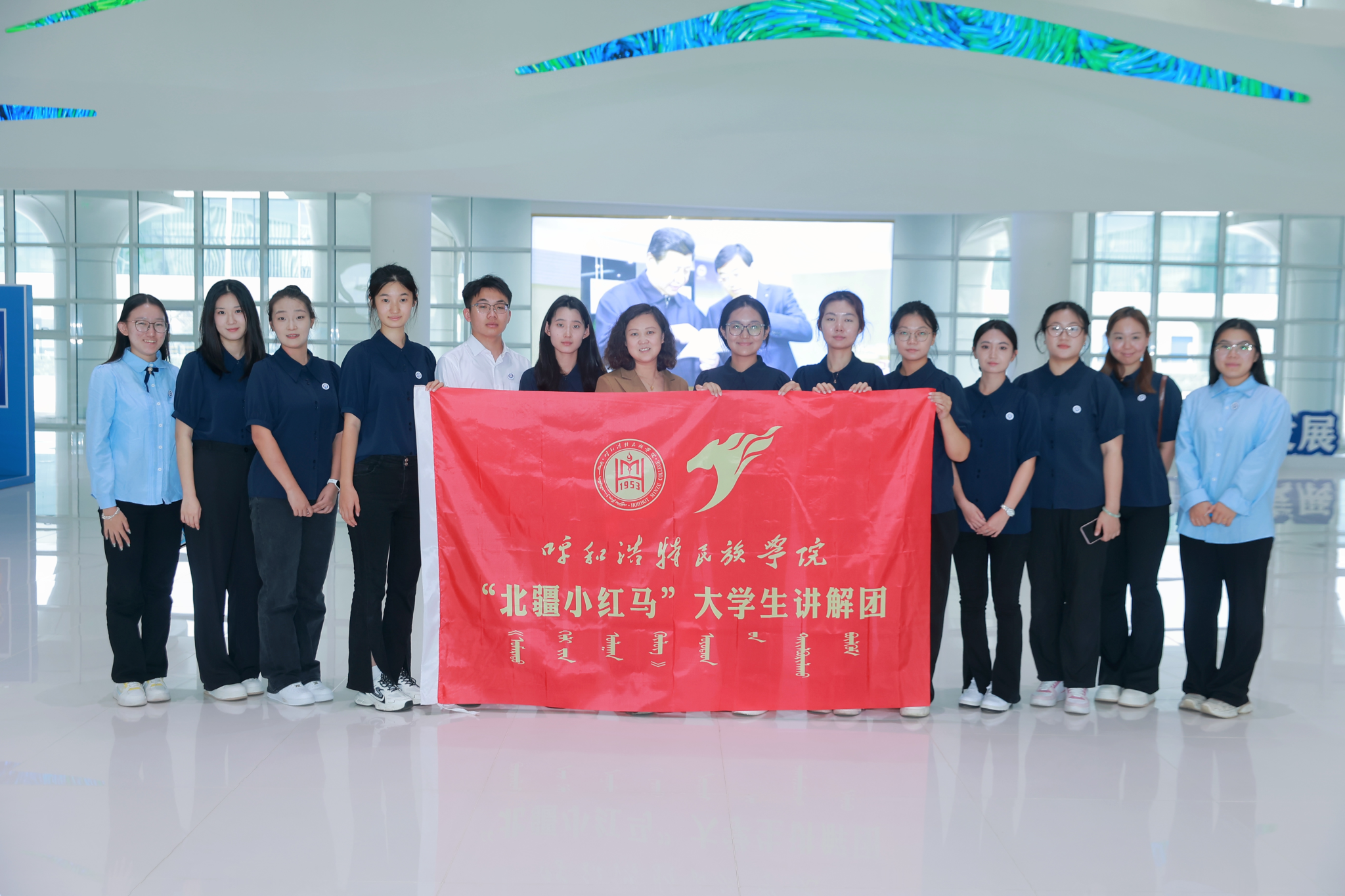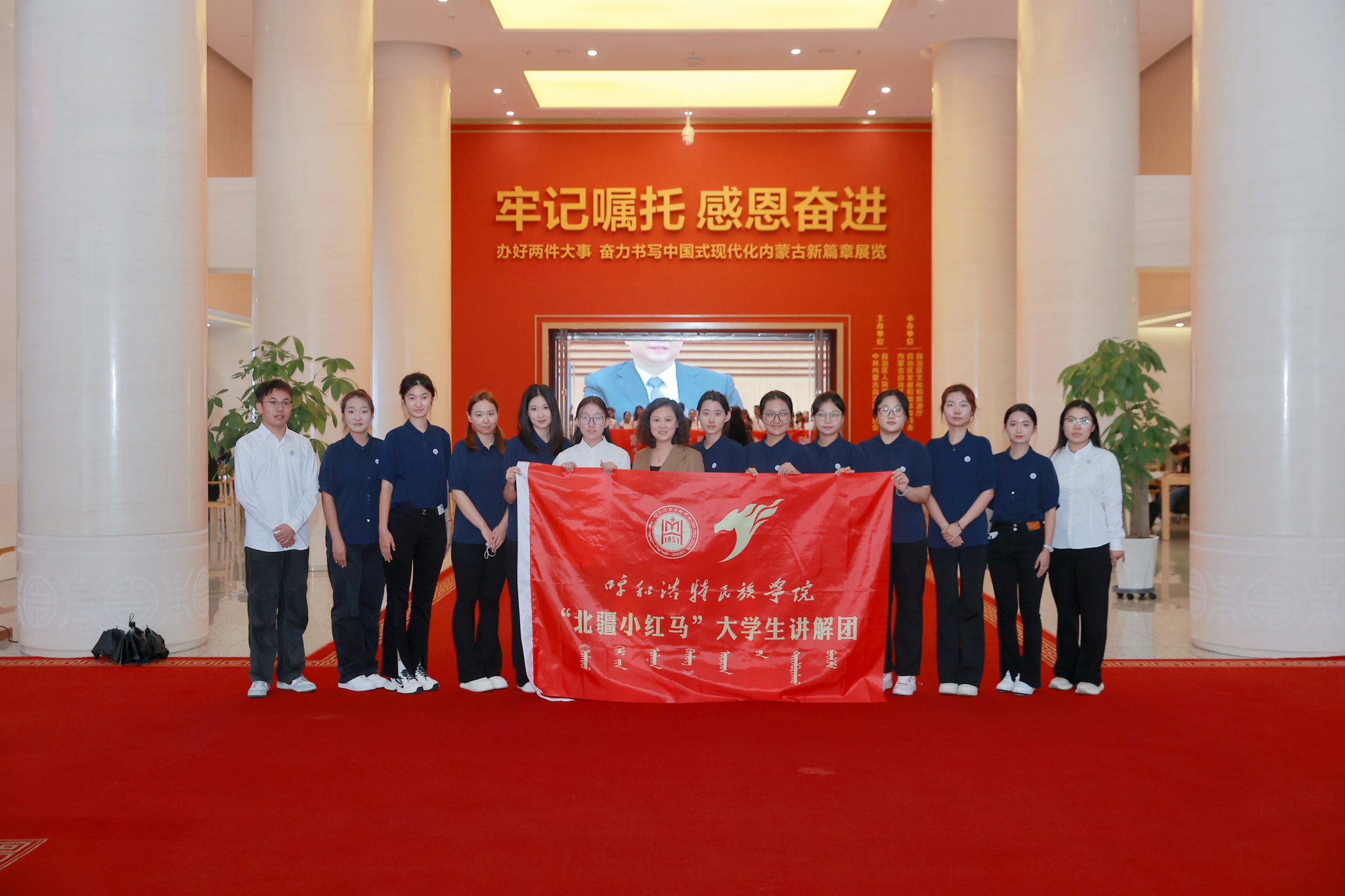 “北疆小红马”大学生讲解团参观内蒙古展览馆合影