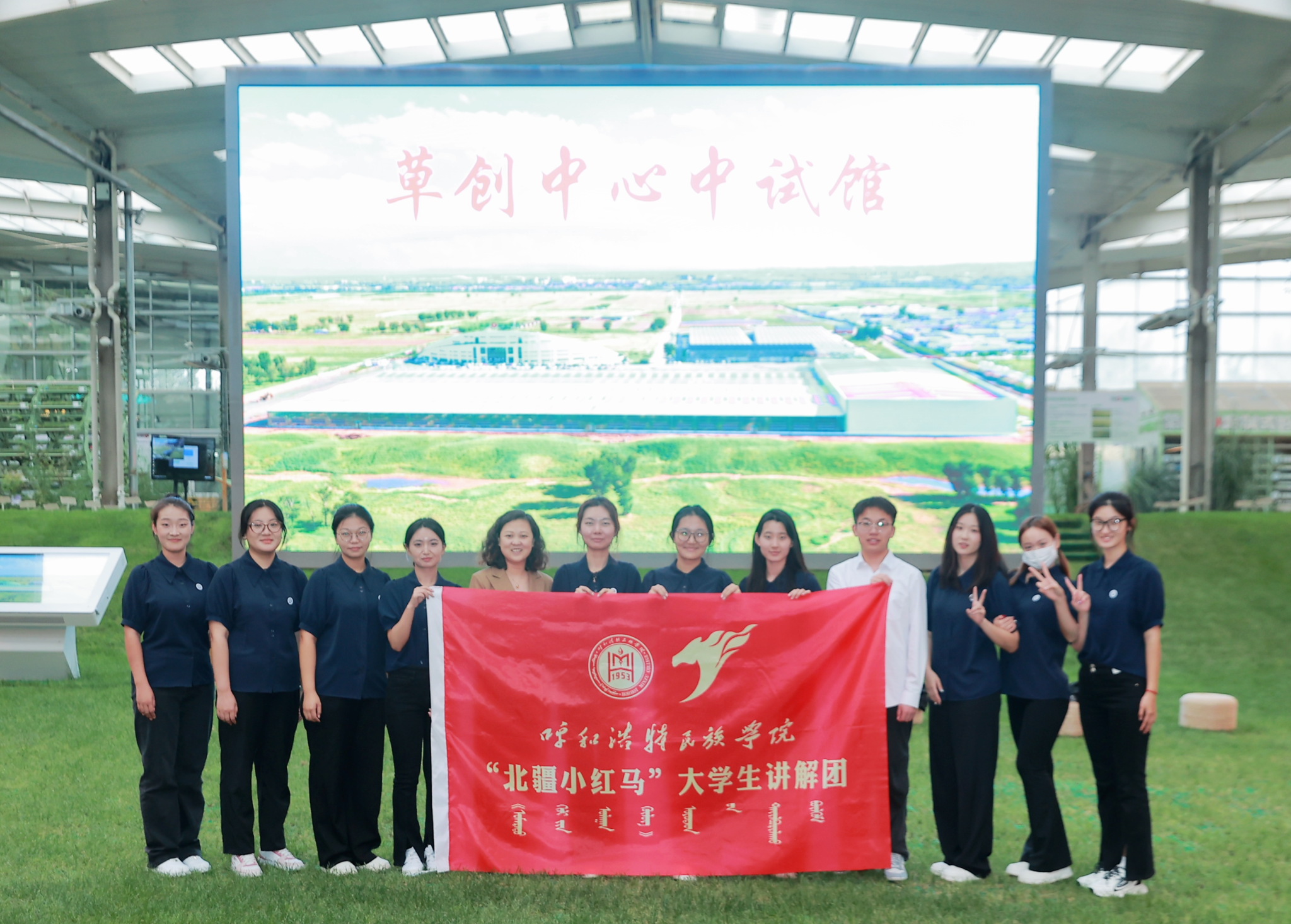 “北疆小红马”大学生讲解团参观蒙草种业合影
