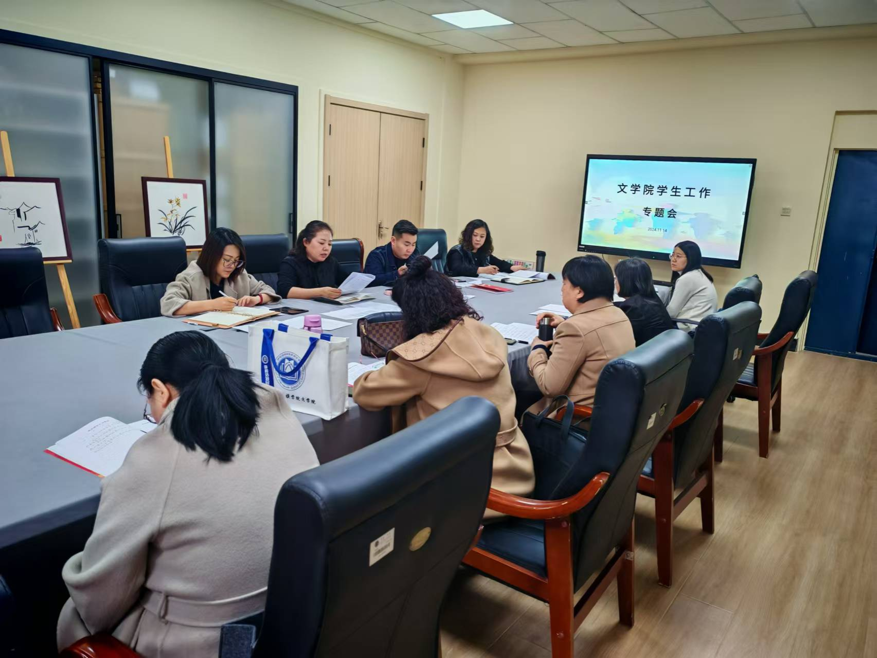 为进一步提升教学质量与学生管理水平,11月14日下午,文学院召开学生工作专题会议。会议由文学院党总支副书记包冬梅主持,全体教师参加会议。