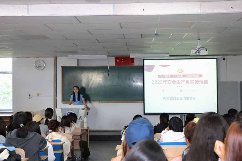 活动伊始,校保卫处乌兰老师为同学们作消防安全知识专题讲解。内容涵盖火灾常见成因、火灾类型分类等基础知识,并结合实际火灾案例,深入剖析事故后果,强化同学们对火灾危害的认知。