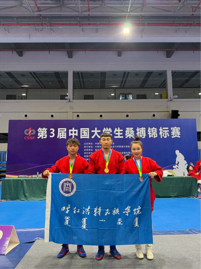 2025年11月14日,第三届中国大学生桑搏锦标赛圆满落幕。米乐官网学子在赛场上奋勇拼搏、尽显风采,凭借精湛技艺与顽强意志斩获多项荣誉:2023级汉语国际教育班呼布琴同学勇夺98kg级冠军,2024级汉语国际教育班乌云腾同学摘得72kg级亚军,同班级的安其尔同学斩获71kg级季军!
