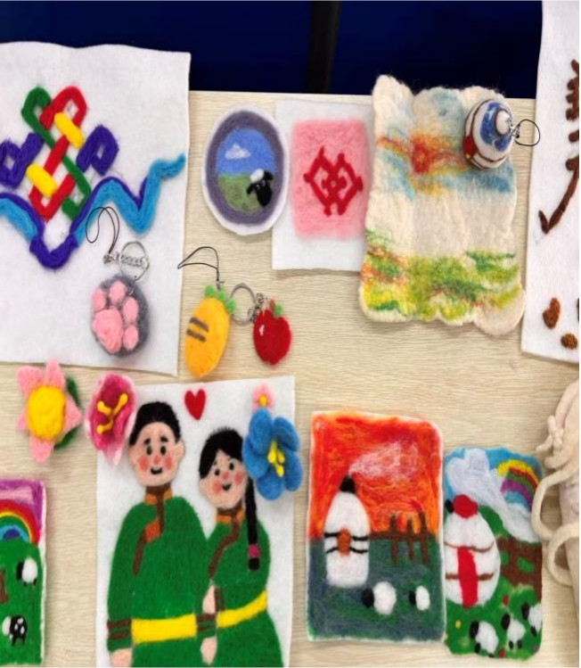 同学们制作的剪纸、毡艺、国画等作品题材多样,既有对传统经典范式的临摹致敬,也不乏充满童趣或个人理解的创新尝试。活动中同学们还简要分享了作品技艺、文化寓意以及学习心得。