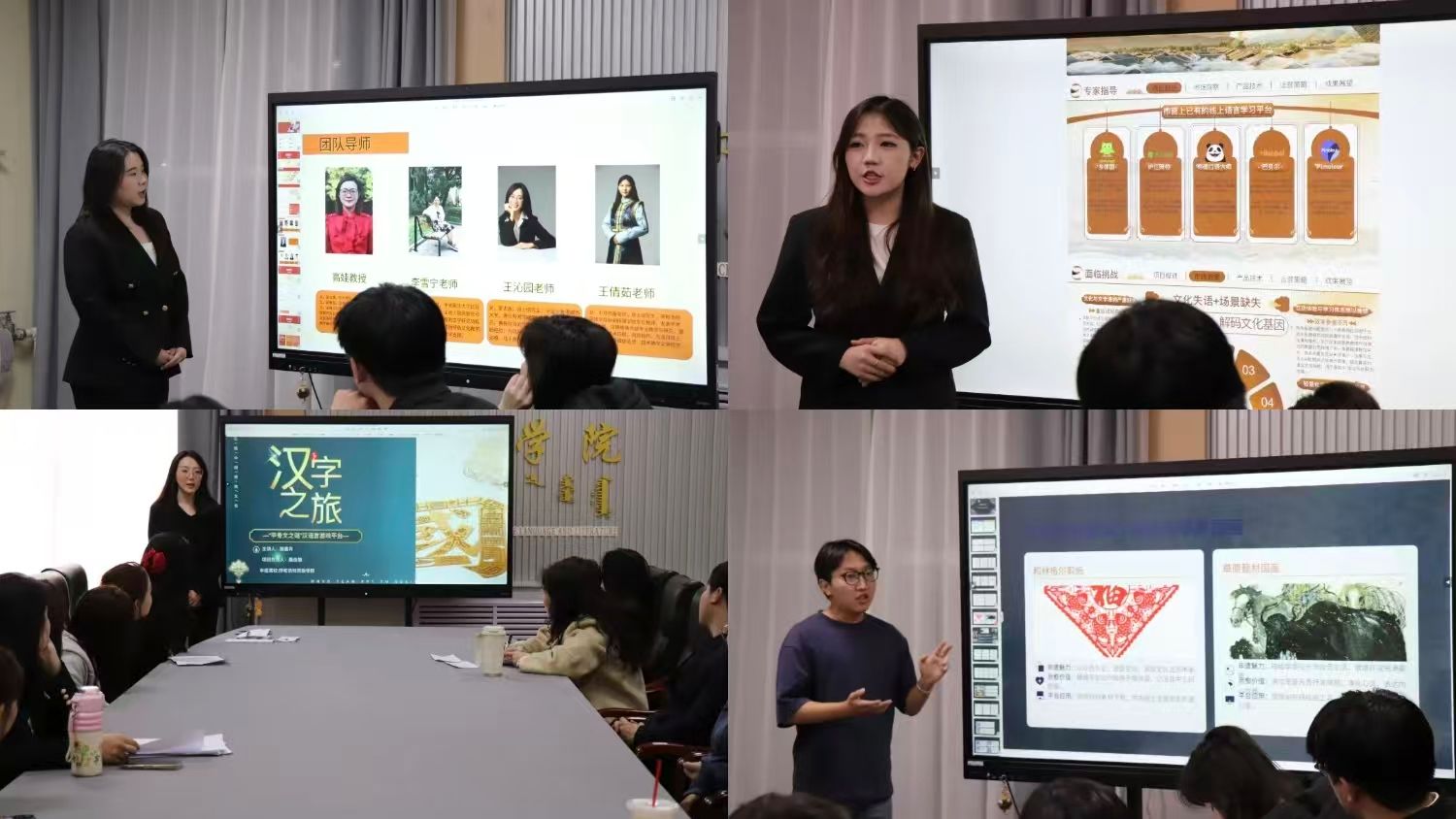 竞赛现场,各参赛团队依次登台路演,集中展示了非遗数字化传承、汉语言文化创新传播、校园服务平台建设、文化创意开发等多个领域的特色创业项目。参赛团队充分结合文学院专业优势,从市场分析、产品设计、商业模式、社会价值等维度全面呈现项目亮点。