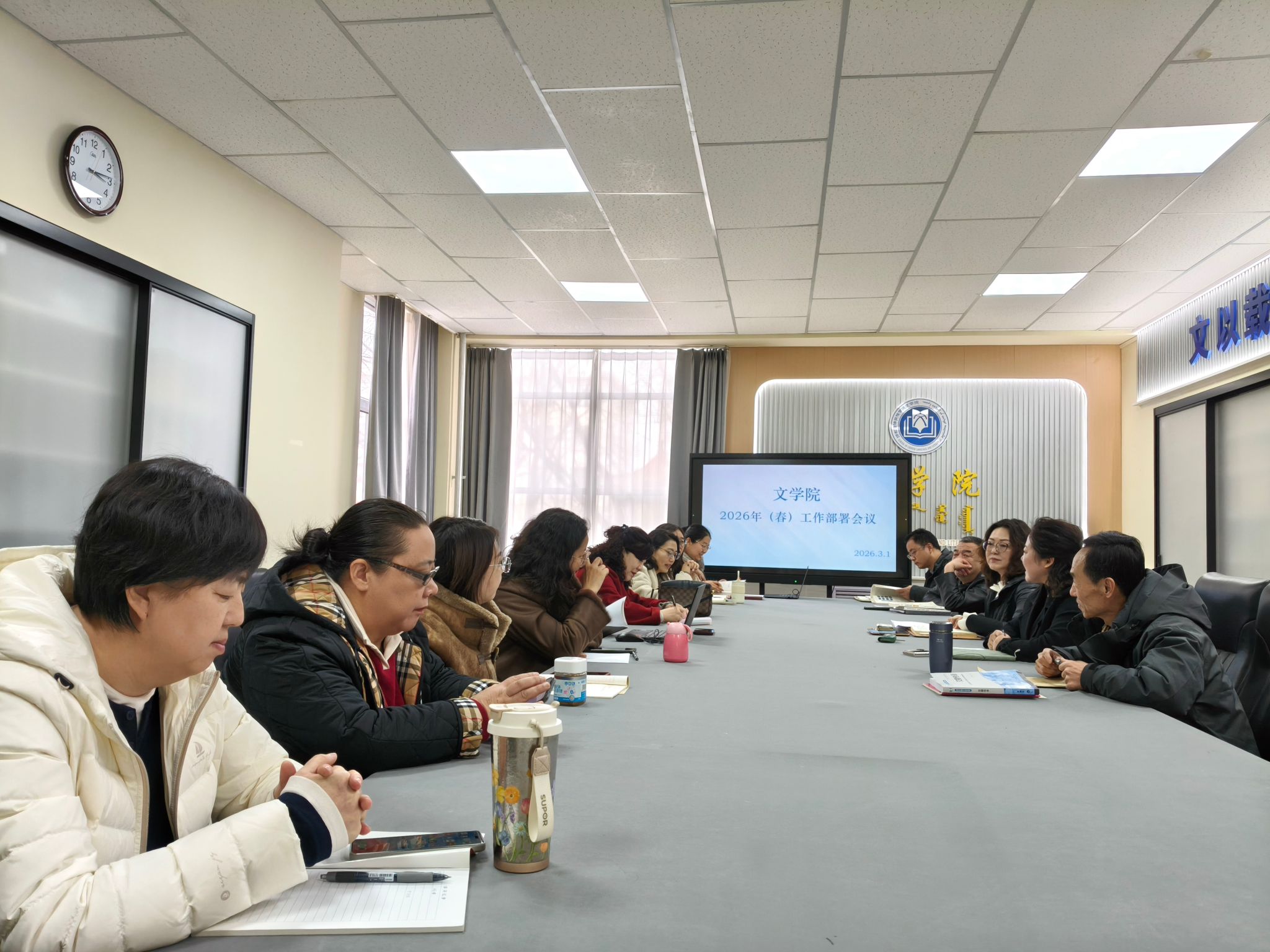 2026年3月1日,文学院召开2026年春季学期工作部署会,学院全体教师参会。