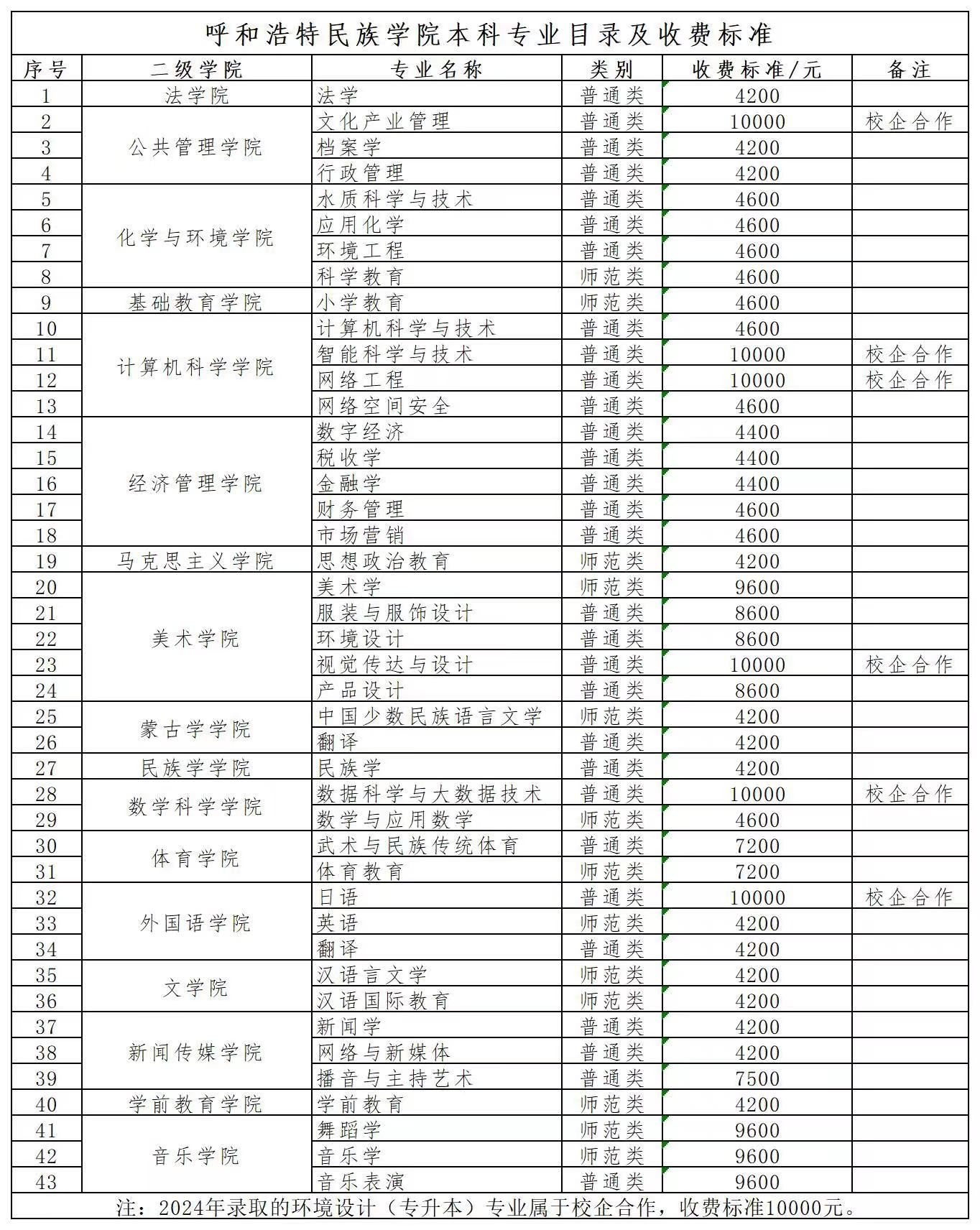 2024年专业目录及收费标准