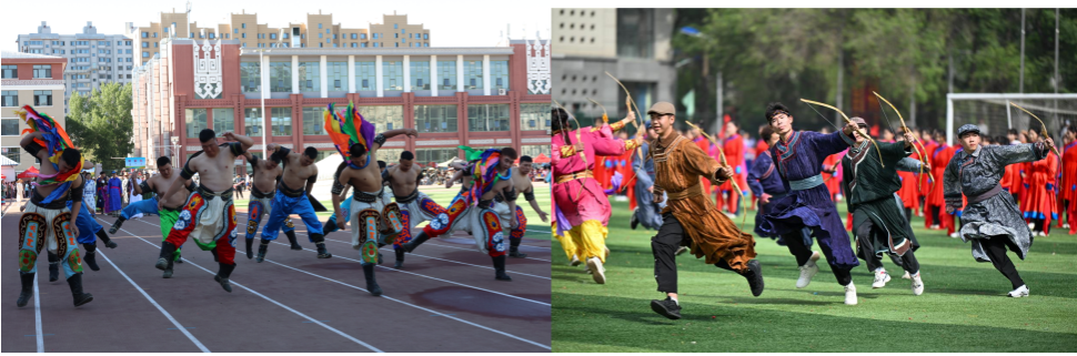 学院将国家首批非物质文化遗产“那达慕”作为文化育人核心载体,已连续举办12届“校园那达慕文化节”,获评“内蒙古自治区校园文化精品项目”,并获得过中国教育报专题报道。活动以“竞技+文化+民族团结”为核心,开幕式设火炬传递、民族歌舞表演,竞技环节涵盖博克、布鲁、射箭、蒙古象棋、布鲁、沙嘎等传统项目,同时推动“民族服饰时尚化”,师生身着传统与现代融合设计的蒙古袍参与,既保留原生态文化韵味,又展现多民族交融活力。这一品牌活动不仅成为弘扬蒙古族传统文化的重要平台,更强化了民族团结教育,让民族传统体育在校园焕发时代新活力。