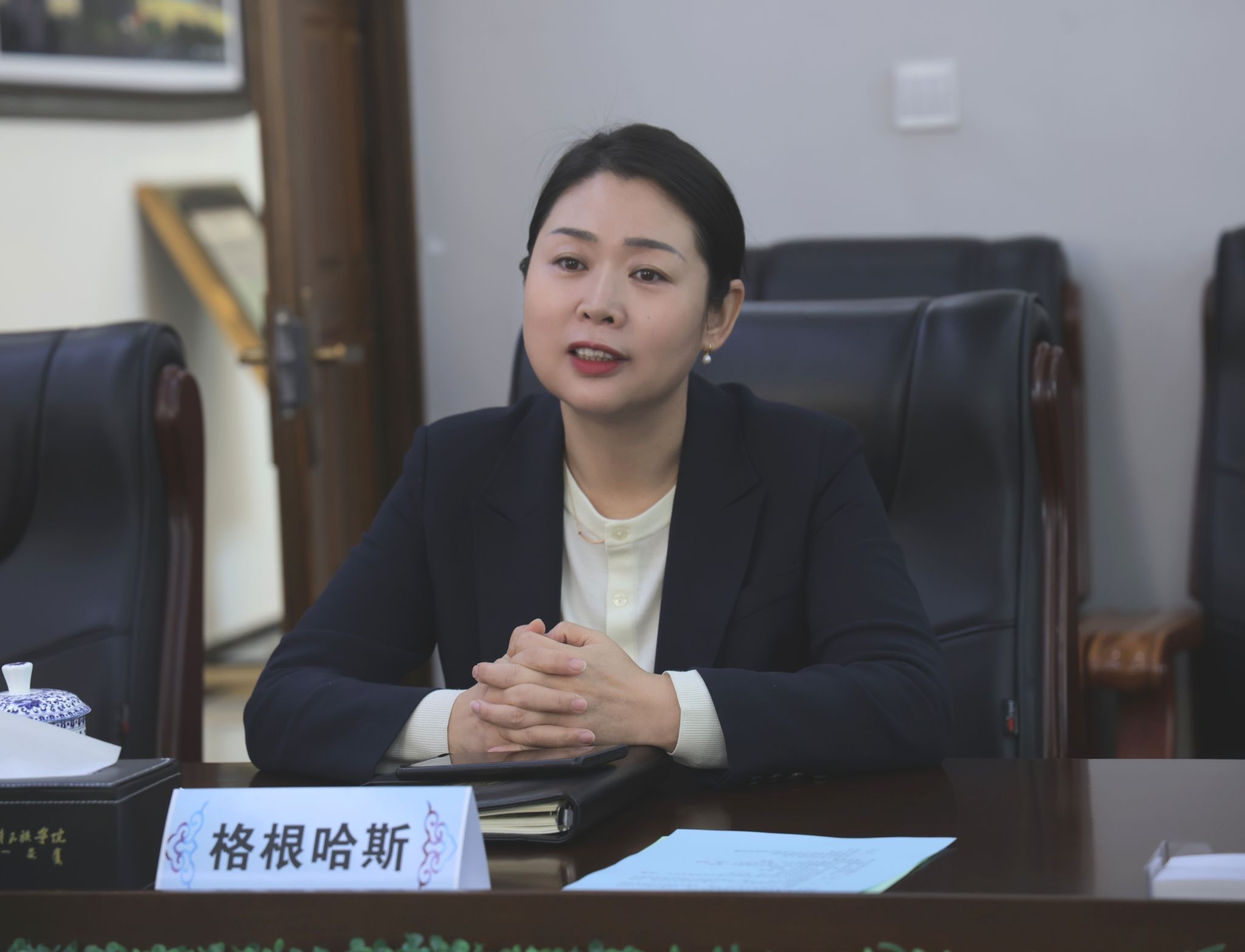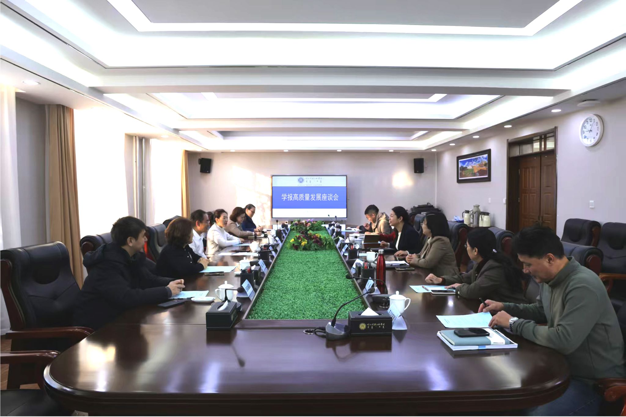 座谈会上,格根哈斯对各位专家的莅临指导表示感谢,并介绍了学校发展历程、特色专业学科以及学报转型发展的时代需求,希望与会专家多提宝贵意见,贡献更多智慧,助力学校学报高质量发展。
