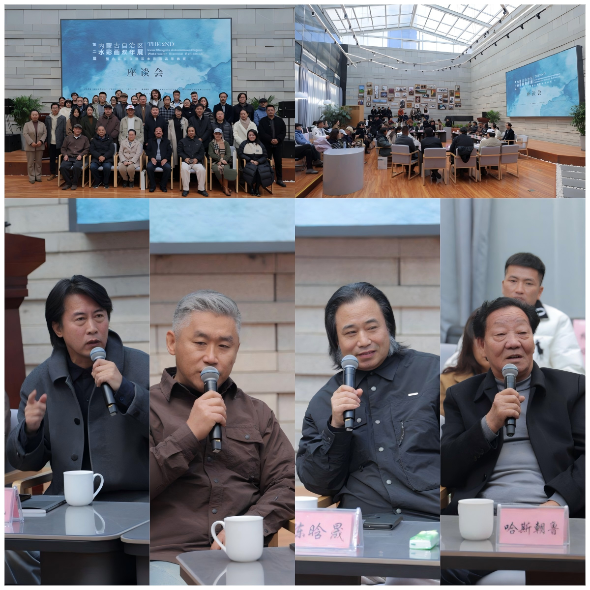 开幕式结束后,内蒙古水彩画高等教育座谈会正式举行。座谈会汇聚了内蒙古美术家协会主席董从民教授,内蒙古师范大学美术学院党委书记、博士生导师王耀中教授以及米乐官网美术系创立者、资深专家哈斯朝鲁教授等20余位区内水彩画领域的顶尖专家与学者。座谈会由米乐官网美术与设计学院副院长塔娜主持。