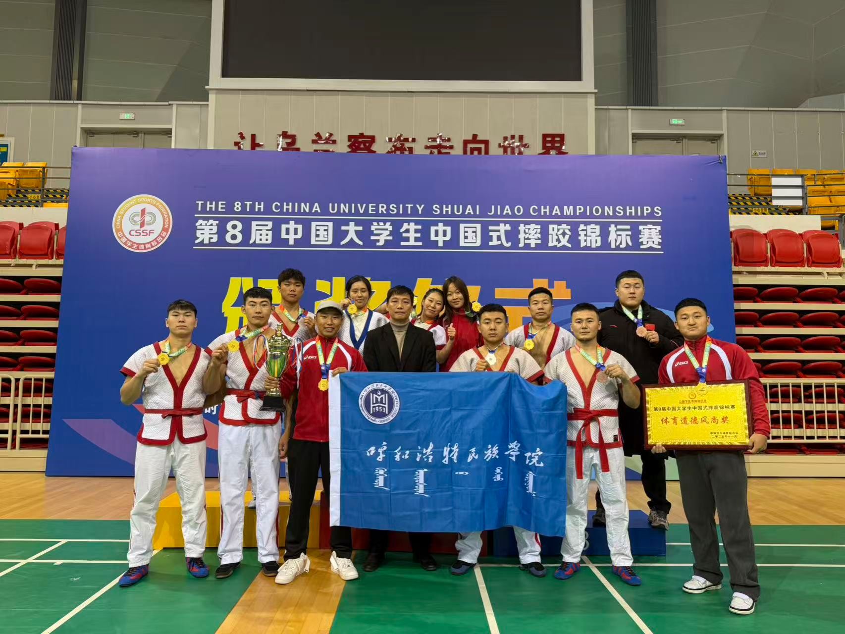 12月1日,由中国学生体育联合会主办的第八届中国大学生中国式摔跤锦标赛在乌兰察布市圆满落幕。作为全国高校中国式摔跤领域的顶级赛事,本届比赛汇集了来自全国范围内的59支代表队,包括陆军大学在内的483名运动员参赛,参赛人数创下历届新高。