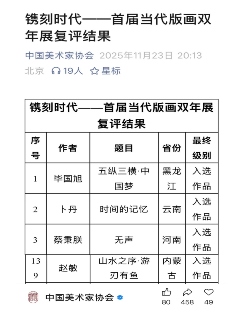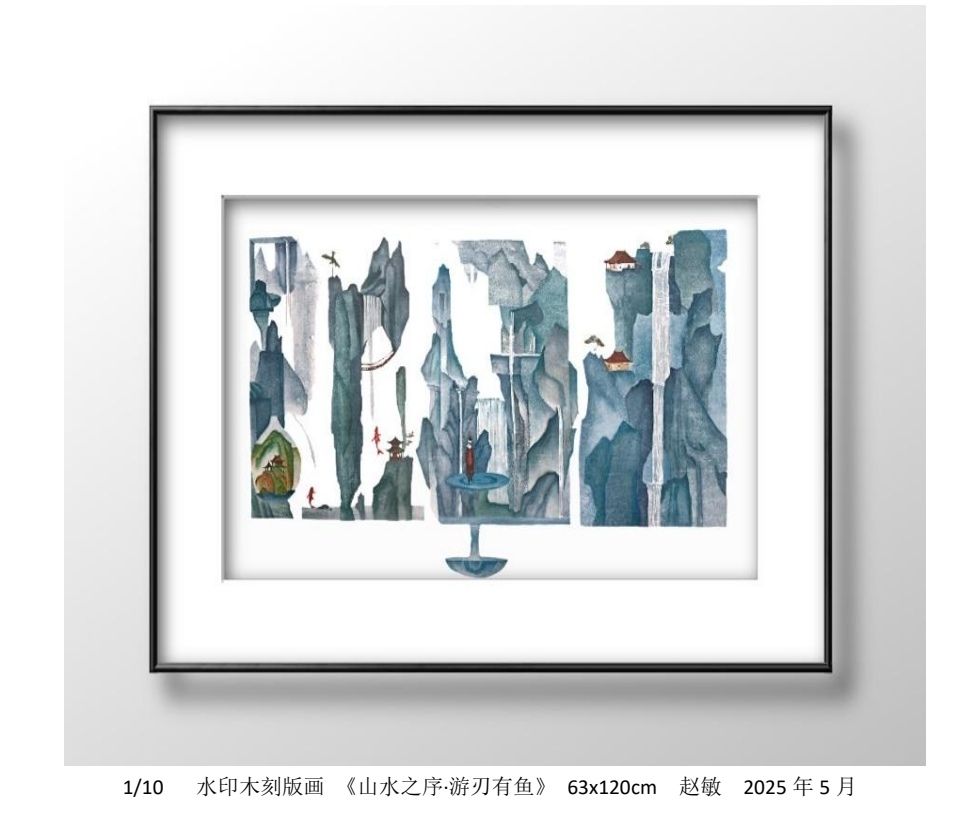 近日,米乐官网美术与设计学院版画专业阿茹娜老师指导的2025届版画专业2班毕业生赵敏,其毕业创作水印木刻版画作品《山水之序·游刃有鱼》成功入选“镌刻时代—首届当代版画双年展”。该展览由中国美术家协会主办,是全国版画领域极具影响力的国家级重要展览。