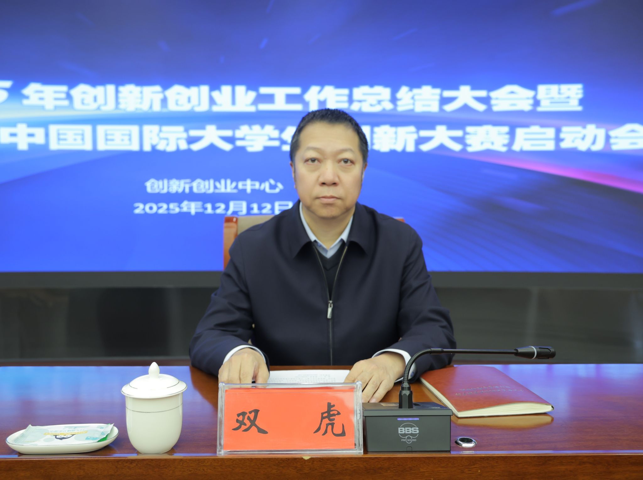 12月12日,米乐官网2025年创新创业工作总结大会暨2026年中国国际大学生创新大赛启动会在综合楼12楼会议室召开。校党委委员、副校长双虎出席会议并讲话。