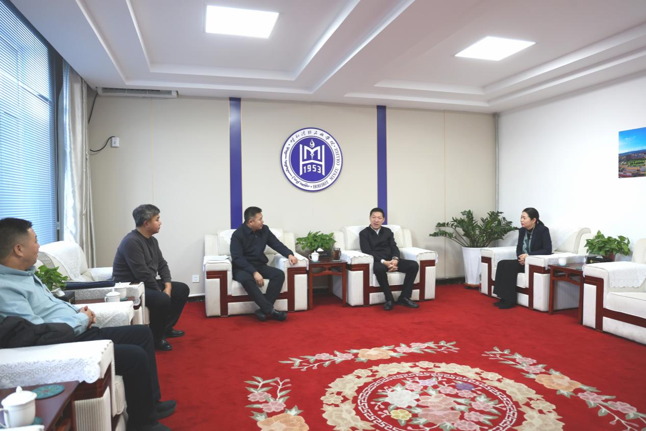 刘九万对张晓辉一行到访表示欢迎,并简要介绍了学校铸牢中华民族共同体意识宣传教育、推进中华民族共同体建设方面的工作经验。他指出,学校始终坚持服务国家战略与地方发展,高度重视铸牢中华民族共同体意识教育与实践。希望以此次交流为契机,发挥校地双方优势,在档案文化挖掘、红色资源传承、民族团结教育等方面开展深度合作,共同为区域文化建设和中华民族共同体建设贡献力量。张晓辉转达了巴林右旗委书记靳江波的问候,介绍了巴林右旗在民族工作、档案史志与文化传承方面的基本情况。