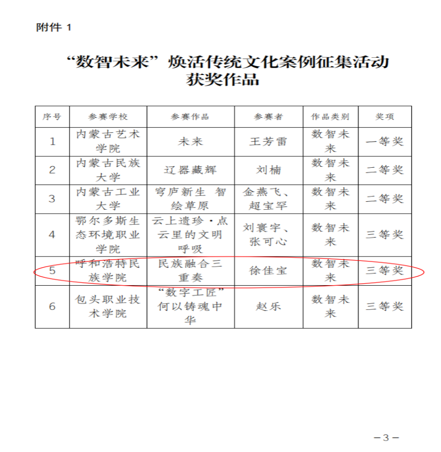 近日,内蒙古自治区教育厅组织开展2025年全区高校“礼敬中华优秀传统文化”宣传教育活动,经各高等学校初评、推荐,自治区教育厅组织专家评审,共评出“数智未来”焕活传统文化案例各类奖项6个,“烽火记忆”高校红色故事各类奖项 6 个,“魅力非遗”原创作品各类奖项 12 个。其中党委统战部【一馆看千年】系列微科普视频以《民族融合三重奏》为作品名称参赛,并获“数智未来”焕活传统文化案例三等奖。