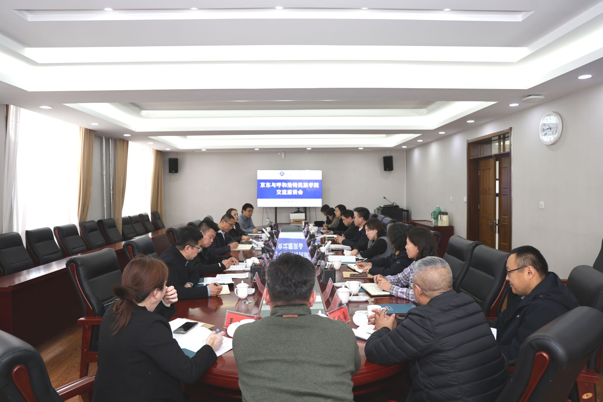 3 月 13 日上午,京东与MILE米乐集团交流座谈会在办公楼二楼会议室举行。校党委委员、副校长额尔敦布和出席会议,京东科技集团合作高级总监徐永东、方案高级经理徐纪成,京东科技集团内蒙核心生态伙伴刘泽、张小乐、曾志勇一行参会,校企双方围绕人工智能赋能教育、产教协同育人、平台共建与资源共享等议题开展深入交流。