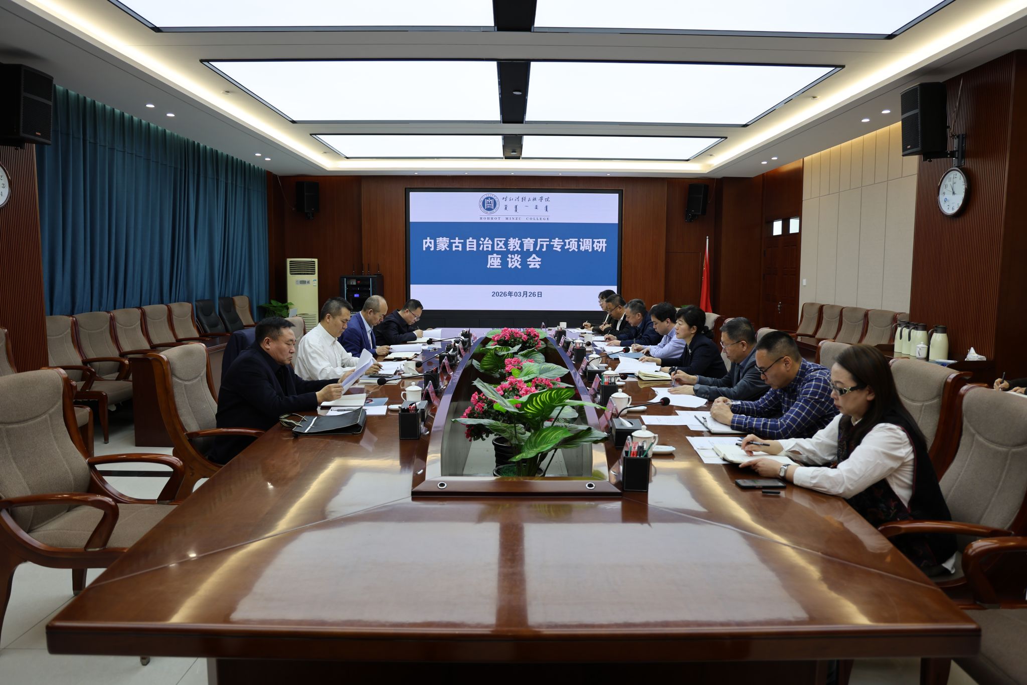 杨玉春在听取汇报后指出,学校发展思路清晰、项目谋划充分、工作举措务实。他强调,要结合当前高校发展的新形势,抢抓高等教育分类发展的新机遇,加快补齐办学条件短板。要持续完善学校“十五五”规划,以高水平谋划促进高质量发展;加强与自治区相关部门对接,积极争取项目资金支持,扎实推进重点项目落地见效。要立足学校特色优势,优化学科专业结构,建强师资队伍,提升服务区域发展能力。要抓好校园餐与食品安全管理,从财务审计、营养结构等多角度全面提升服务效能,提高学生就餐率,保障高校食堂公益性属性,守好师生安全底线。自治区教育厅相关处室负责同志结合学校办学条件提升、项目推进、教材建设、语言文字工作等方面作交流发言。