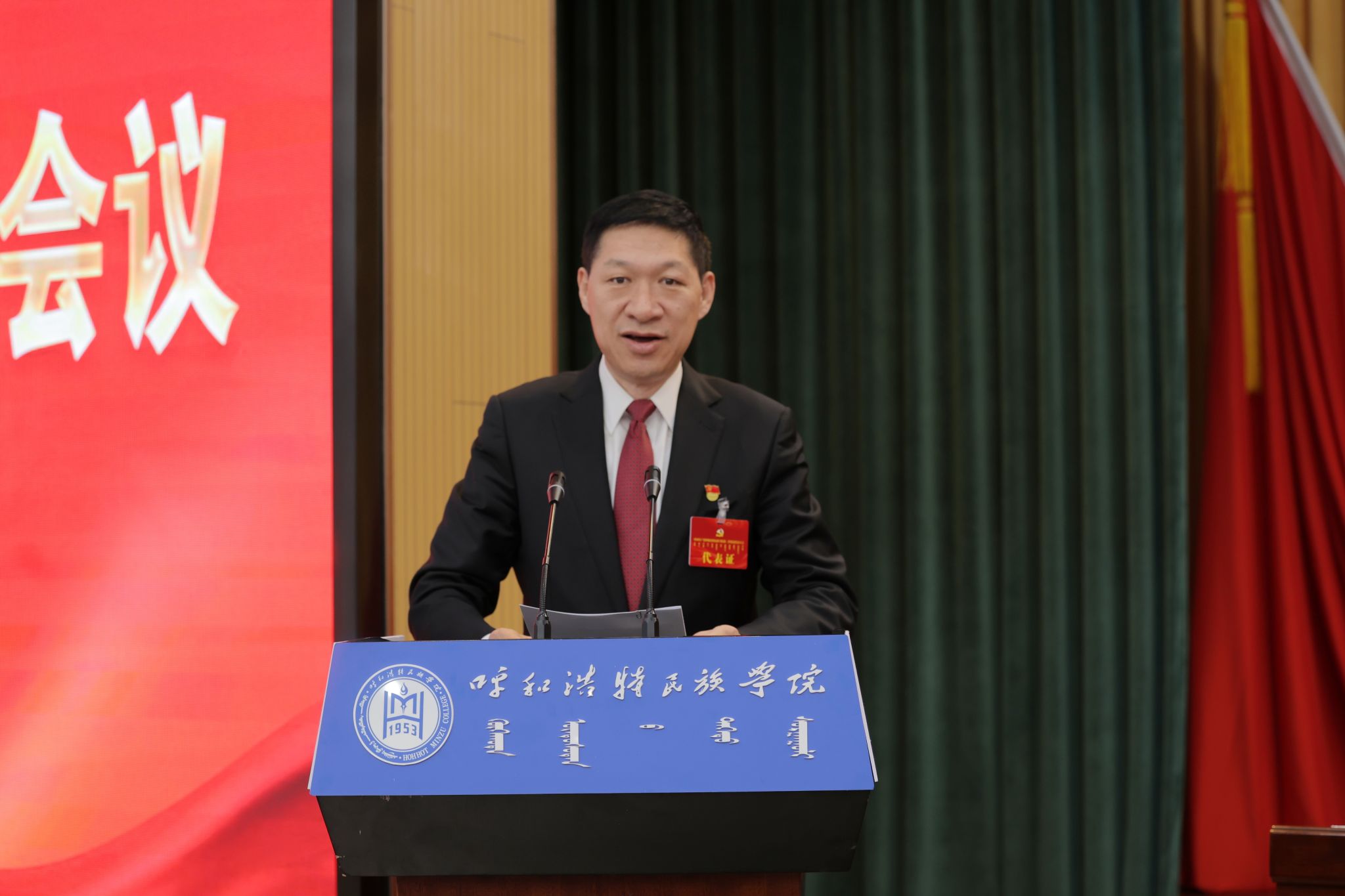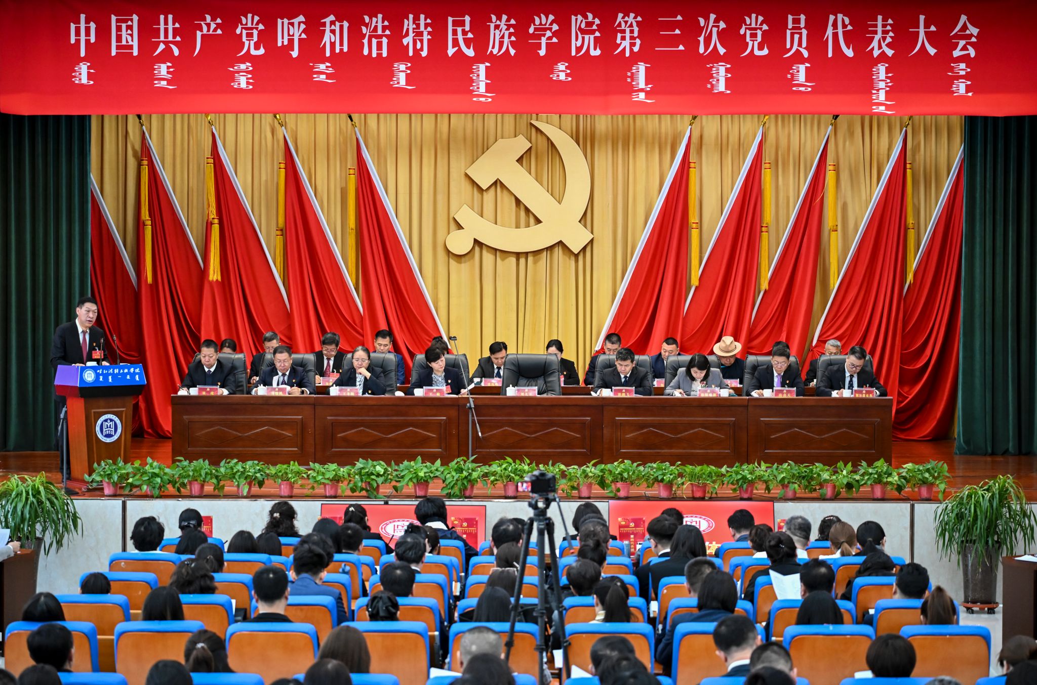 刘九万代表中国共产党MILE米乐集团第二届委员会作题为“扎根北疆、铸魂育人,奋力谱写新时代应用型民族院校高质量发展新篇章”的报告。